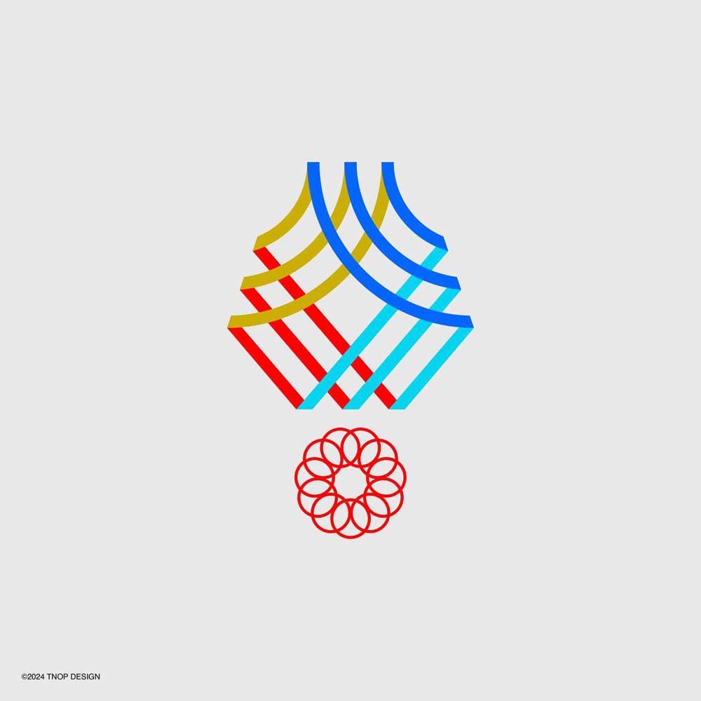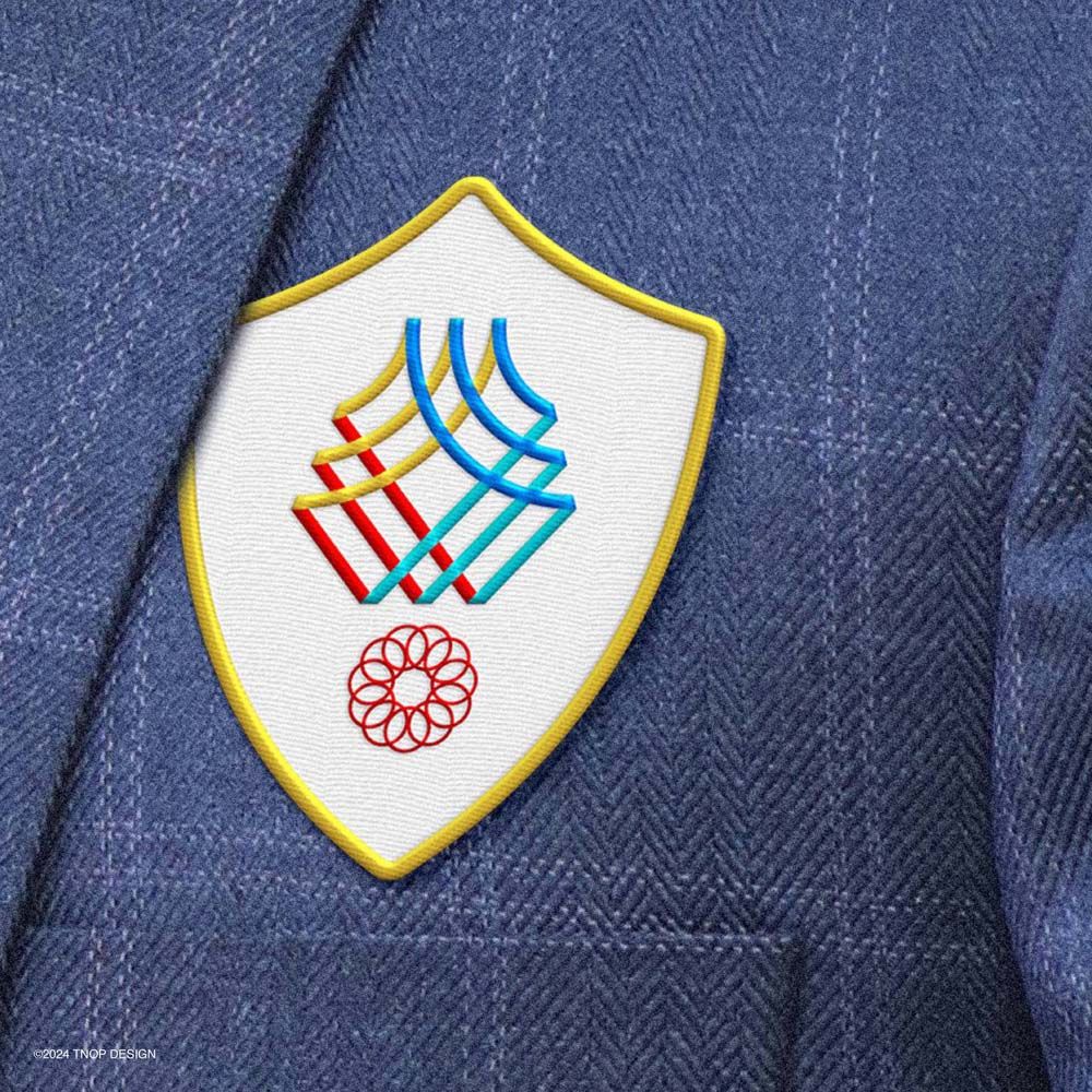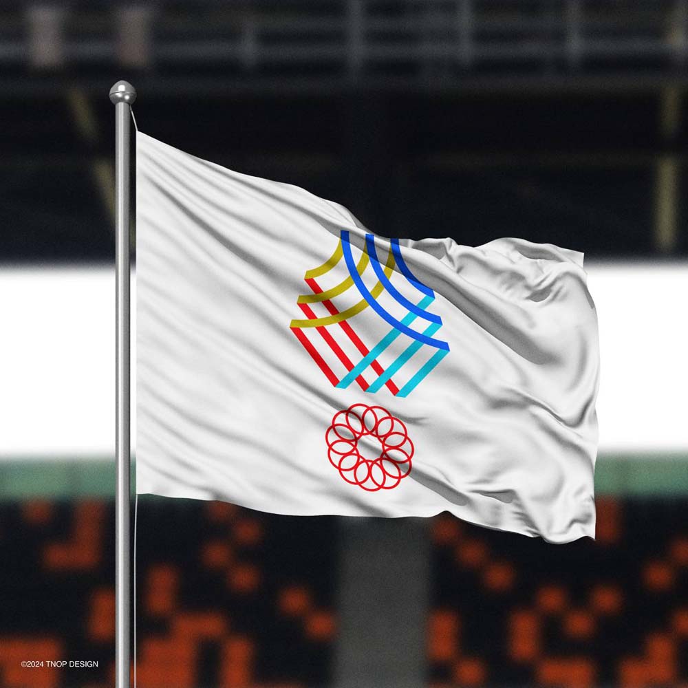 การออกแบบโลโก้ใช้ ลายเส้นจากกรอบเขตสนามกีฬา ผสานกับ ลวดลายกริด จากศิลปะไทยดั้งเดิม ลองจินตนาการถึงเส้นลู่วิ่ง เส้นขอบสนามฟุตบอลที่มีทั้งเส้นตรงและเส้นโค้ง นำมาผสานกับลายสามเหลี่ยมทรงจั่วแบบศิลปะไทย ผลลัพธ์คือรูปทรงที่สะท้อนถึงความสมดุลระหว่างกฎเกณฑ์และความงามของศิลปะไทย