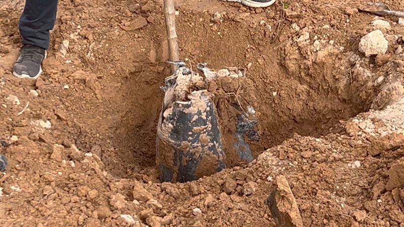 ที่เกิดเหตุเนื้อที่ 3 ไร่ บริเวณกลางไร่ พบถังพลาสติก ภายในมีลูกระเบิดหลายลูก จนท.ขุดลงไป 60 ซม. เพื่อตรวจสอบพบเป็นระเบิดสมัยสงครามโลก จำนวน 7 ลูก อยู่ด้านใน จนท.จึงกั้นพื้นที่เพื่อความปลอดภัย