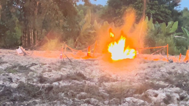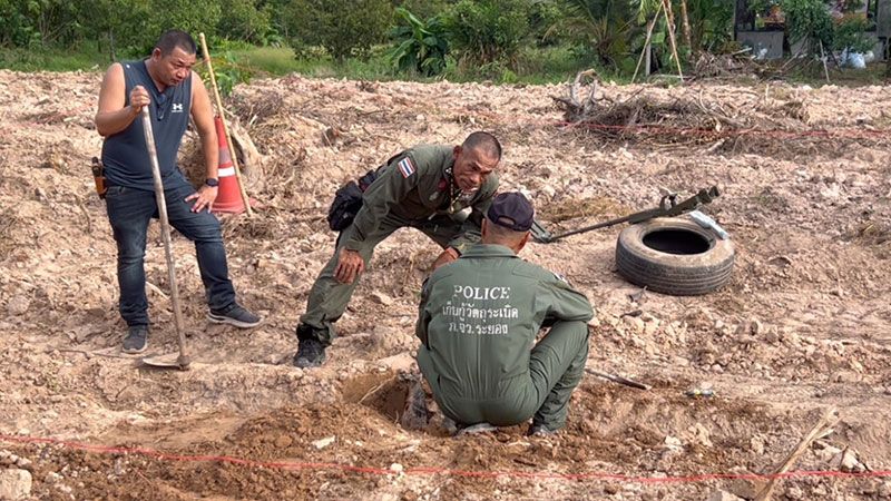 ชาวบ้านเตรียมไถที่ปลูกมัน ผงะเจอระเบิดสมัยสงครามโลก 11 ลูก ใส่ถังฝังดิน EOD ระยอง เข้าตรวจสอบทำลายทิ้ง