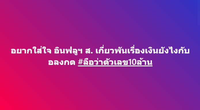 และต่อมาก็ได้โพสต์อีกข้อความว่า "อยากใส่ใจ อินฟลูฯ ส. เกี่ยวพันเรื่องเงินยังไงกับ อลงกต #ลือว่าตัวเลข10ล้าน"