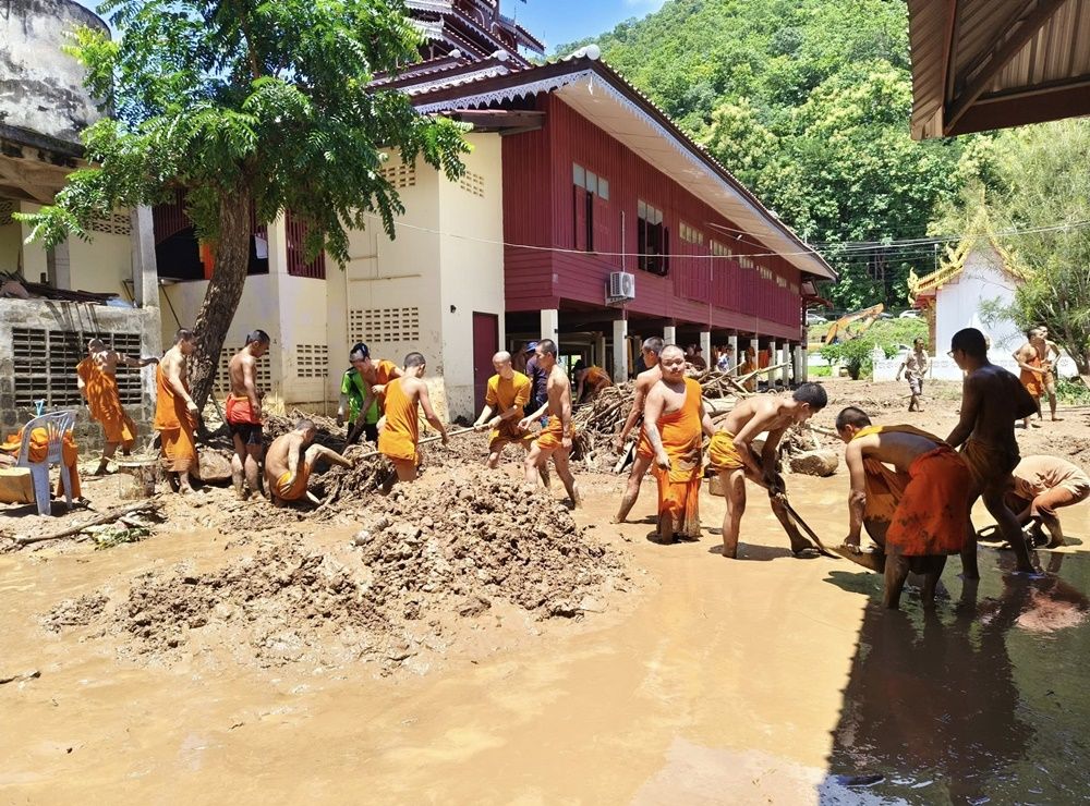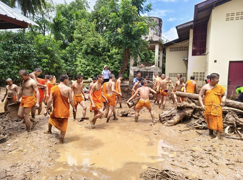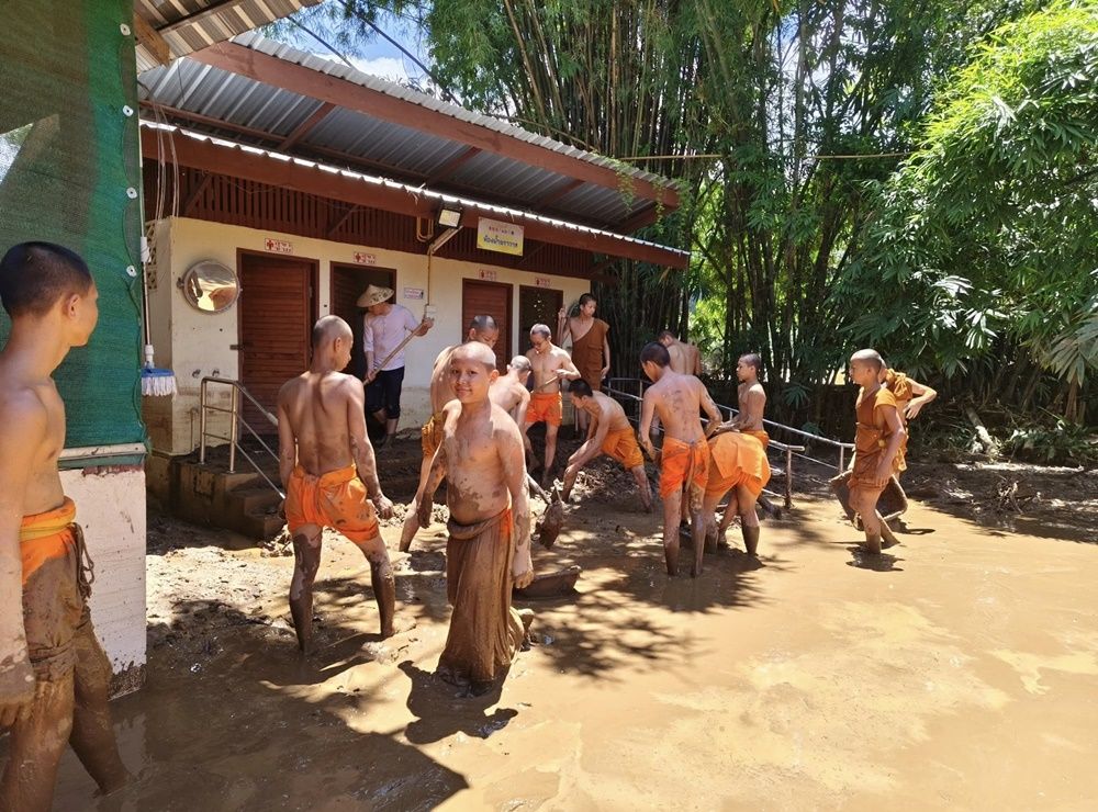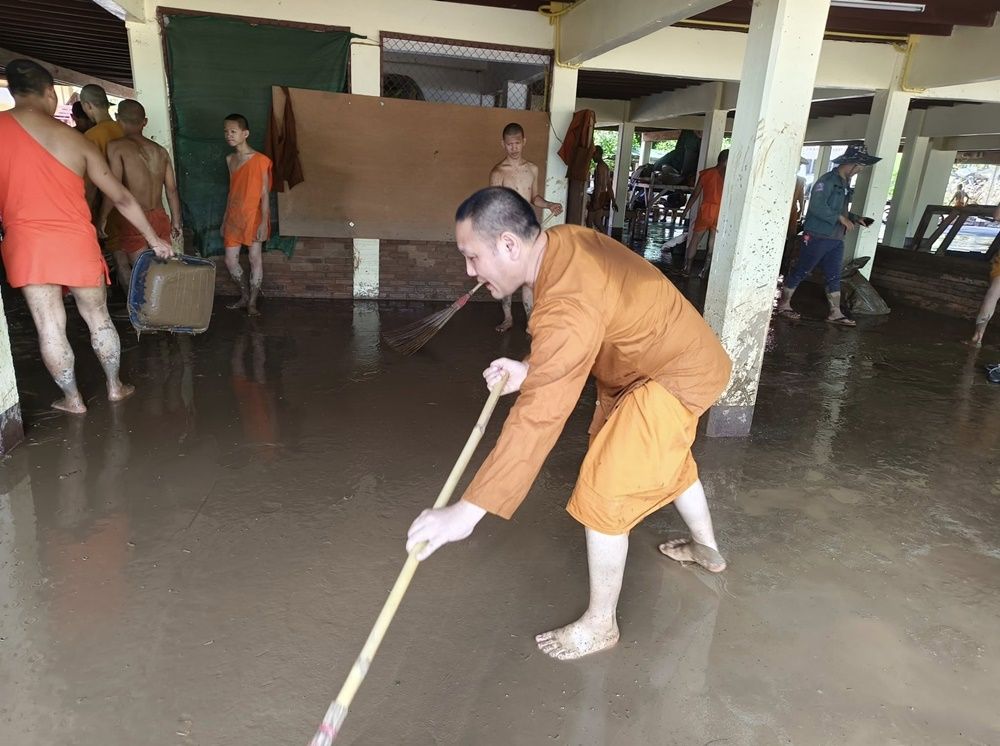 คุณพระช่วย นำคณะศรัทธาหลายภาคส่วนในแม่ฮ่องสอน ร่วมกันทำความสะอาด เคลียร์พื้นที่ประสบอุทกภัยที่วัดผาบ่องใต้