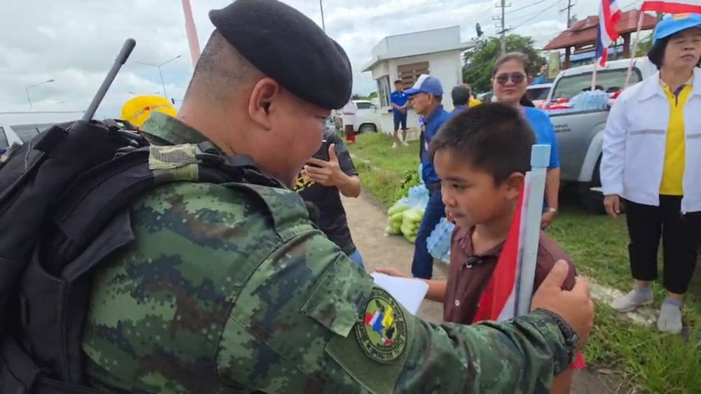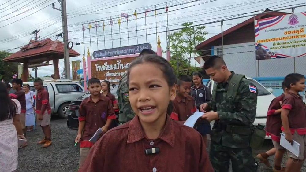 ด.ญ.รัตนธร มาประจวบ นักเรียนชั้น ป.6 โรงเรียนถนนหัก กล่าวด้วยความดีใจว่า "ดีใจมากที่ทหารลงมาทักทาย และอยากจะขอเป็นกำลังใจให้ทหารรบชนะเอาผืนแผ่นดินไทยกลับคืนมาทั้งหมด"