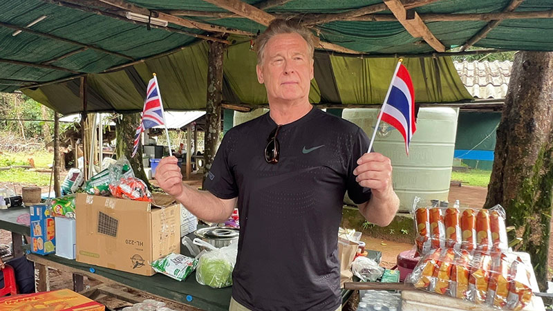 หลังจากมอบสิ่งของเสร็จแล้ว นายมาร์ค ได้กล่าวว่า รู้สึกเป็นเกียรติที่ได้มาเป็นส่วนหนึ่งในการช่วยเหลือ เพราะส่วนใหญ่ชาวอังกฤษที่เดินทางมาประเทศไทย มักจะไปเที่ยวที่พัทยามากกว่าที่จะเลือกช่วยเหลือแบบนี้ หลังจากพูดจบแล้วได้ถ่ายรูปคู่กับนายมาร์ค พร้อมถือธงชาติไทย และกล่าวต่อว่า ไทยแลนด์ สู้ สู้