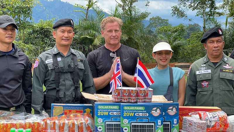 3 ตุลาคม 2568 เวลา 08.00 น. ที่ฐานตำรวจตะเวนชายแดนจังหวัดตราด Mr.Mark Shelley หรือนายมาร์ค เชลลีย์ นักแสดงชาวอังกฤษ พร้อมคุณณภัทร์วรัญญ์ สิริรัตนทรัพย์ ภรรยาชาวจังหวัดตราด เดินทางจากประเทศอังกฤษมายังจังหวัดตราด เพื่อนำแผงโซล่าเซลล์ จำนวน 9 ชุด สำหรับอุปกรณ์อิเล็กทรอนิกส์ อาหารแห้ง ขนม และน้ำดื่ม มามอบให้กับตำรวจตะเวนชายแดน ที่ประจำการอยู่แนวชายแดนตราด เพื่อเป็นขวัญกำลังใจให้การปกป้องอธิปไตยไทย โดยมี พ.ต.อ.สยามรัฐ รัตน์ชนะจน ผบ.ร้อย ตชด.116 และตำรวจ ตชด. ร่วมให้การต้อนรับและรับมอบสิ่งของ