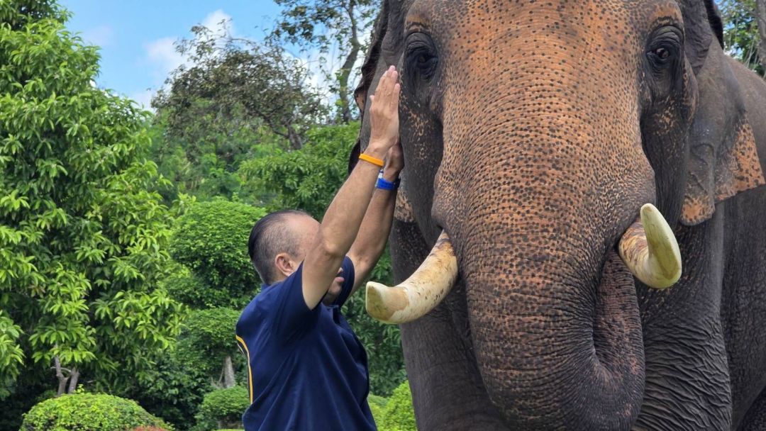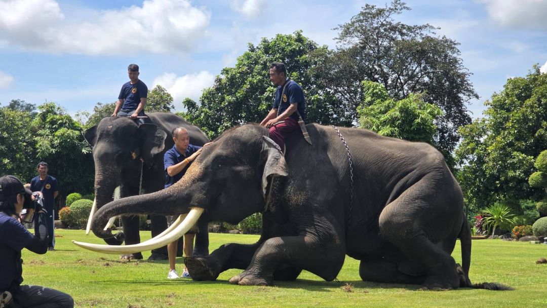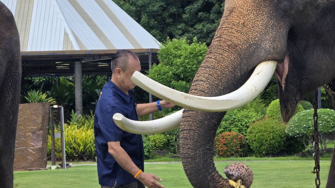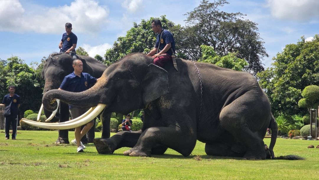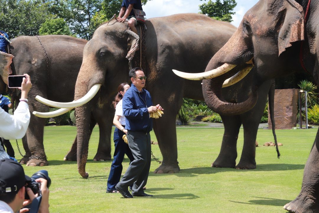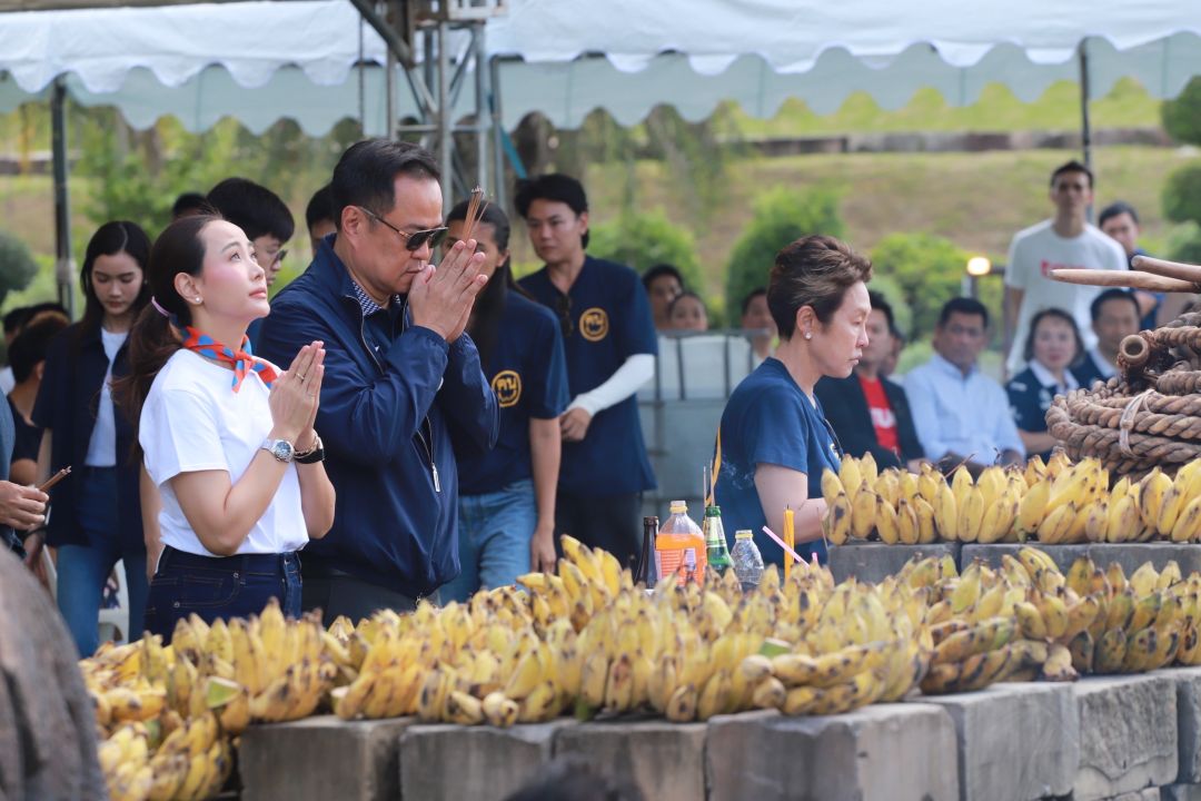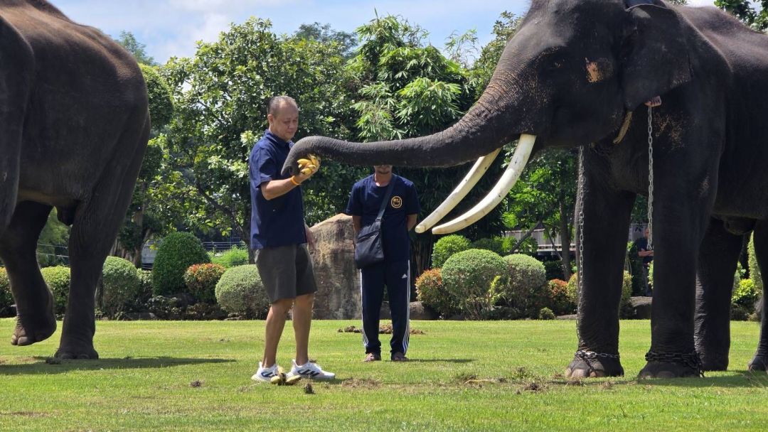ต่อมาเวลา 10.50 น. นายอนุทิน ชาญวีรกูล นายกรัฐมนตรี และรมว.มหาดไทย ซึ่งเดินทางมาจากกรุงเทพมหานคร ถึงบริเวณสถานที่จัดงาน โดยทันทีที่พบกับนายเนวิน นายเนวินได้สวมกอดนายอนุทิน ก่อนจะเข้าสู่พิธีปะกำช้างจำนวน 10 เชือก ซึ่งเป็นพิธีที่ตระกูลชิดชอบสืบทอดมายาวนาน โดยมีคนในตระกูลชิดชอบ อย่างนายเนวิน พล.ต.อ.เพิ่มพูน นายศักดิ์สยาม ร่วมในพิธี หลังจากนั้นบรรดาผู้ร่วมงานได้นำกล้วยน้ำวามาป้อนช้าง เพื่อความเป็นสิริมงคล ตามความเชื่อ และได้มีพิธีผู้ข้อมือเรียกขวัญ เพื่อขอพรจากหมอช้างด้วย