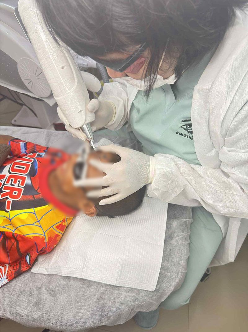 โดเพจดังกล่าวซึ่งเป็นช่างสัก ได้ช่วยเหลือในการลบรอยสัก กลางหน้าผาก พร้อมระบุว่า “เฮ่ออออ !อย่าหาทำอีกนะคะเด็กน้อย อย่าเล่นกันแบบนี้อีก มันไม่ตลกเลยยย #เคสนี้ช่วยเหลือเด็กน้อยไม่คิดเงินลบให้ฟรีจนหาย”