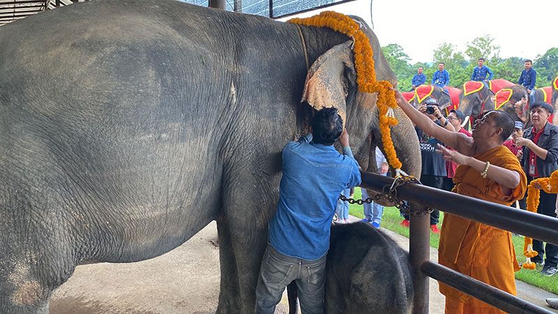 สวนนงนุชพัทยาจัดพิธีรับขวัญลูกช้าง พลายจอมทอง เชื่อมสายใยแห่งความผูกพันกับ น้องข้าวต้ม ลูกช้างป่าพลัดหลง
