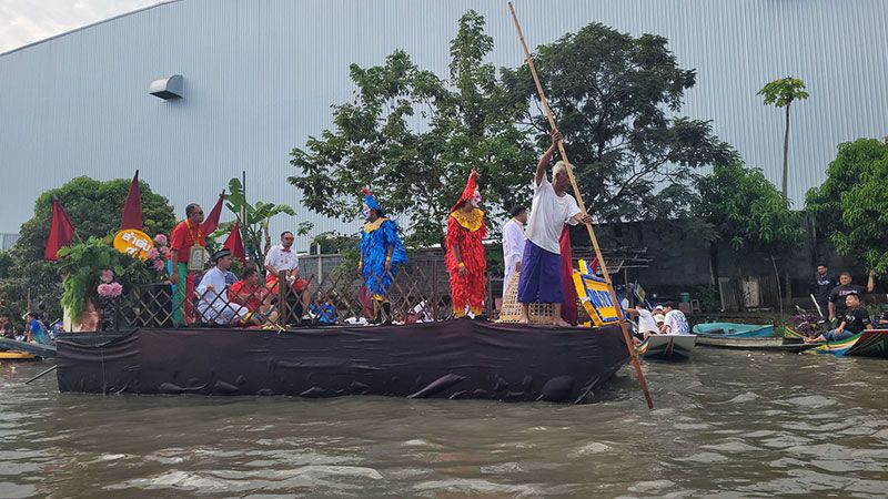 ขณะที่ นายสุนทร ปานแสงทอง นายกองค์การบริหารส่วนจังหวัดสมุทรปราการ พร้อมคณะผู้บริหาร และส.อบจ.ก็ได้ล่องเรือในคลองสำโรง เพื่อโยนข้าวต้มมัด น้ำดื่ม ไข่ต้ม ให้กับประชาชนริมสองฝั่งคลองสำโรง ซึ่งบรรยากาศเป็นไปด้วยรอยยิ้มและความอบอุ่น โดยมีขบวนเรือแห่จากหน่วยงานต่างๆ เข้าร่วมขบวนจำนวนมาก นอกจากนี้ ผู้ว่าราชการจังหวัดสมุทรปราการ ได้ร่วมแจกข้าวต้มมัดแก่ผู้มาร่วมงาน