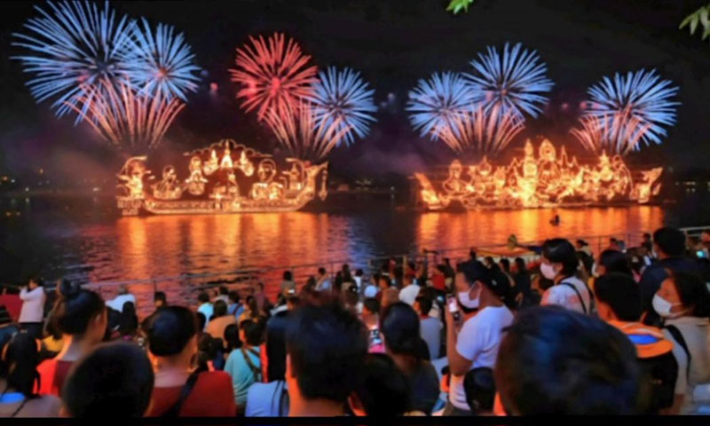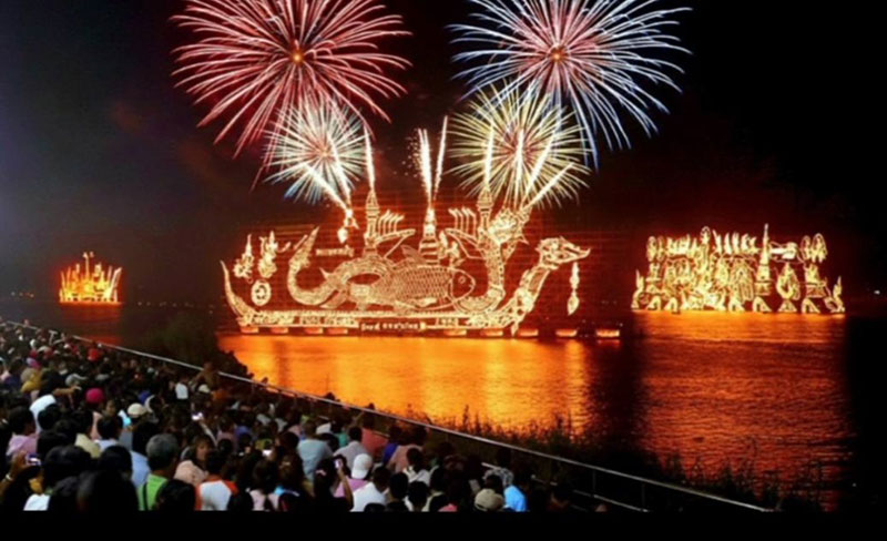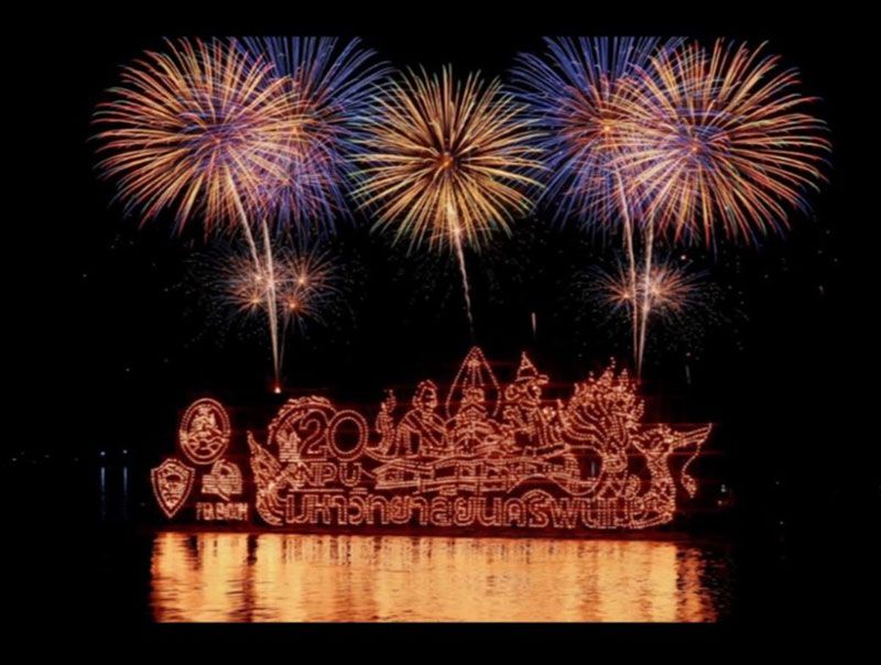 นอกจากนี้ผู้เสื่อข่าว ได้รายงานเพิ่มเติมว่า เมื่อวันที่ 5 ตุลาคมได้เกิดเหตุการณ์ไม่คาดคิด กรณีเรือของหน่วยเรือรักษาความสงบเรียบร้อยตามลำแม่น้ำโขง (นรข.) จำนวน 3 ลำ ได้ลากจูงเรือไฟโชว์เฉลิมพระเกียรติที่จอดซ่อมอยู่ท้ายเมืองหลายวัน เมื่อซ่อมเสร็จก็ลากทวนน้ำเพื่อเตรียมจะจุดไฟไหลโชว์ให้นักท่องเที่ยวได้ชมกัน ปรากฏว่าลากไปได้เพียงไม่กี่เมตร เรือที่มีขนาดใหญ่ได้ยุบยวบลงมาทั้งโครง โชคดีที่ไม่มีใครได้รับอันตราย.