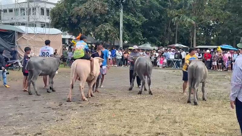 เมื่อเริ่มการแข่งขัน ควายหลายตัววิ่งออกจากจุดสตาร์ท คนขี่ควายบังคับควายวิ่งไปเข้าเส้นชัย กองเชียร์ริมสนามส่งเสียงเชียร์สุดมัน ทันใดนั้นคนขี่ควายร่วงตกจากควาย แต่ควายไม่ยอมแพ้ วิ่งตะบึงไปเข้าเส้นชัยโดยทิ้งเจ้าของไว้ข้างหลัง