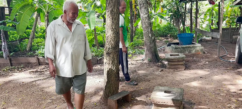 นายวีรวัฒน์ พันธุ์ศิลป์ อายุ 65 ปี(เสื้อขาวเขียว) อดีตผู้ใหญ่บ้านแนงมุด บอกว่า ตอนนี้มีบ้างเพจลงข้อมูลที่คลาดเคลื่อนเกี่ยวกับปราสาท ว่า ปราสาทคันนายังสมบูรณ์อยู่ ซึ่งความจริงมันไม่ใช่ ตัวปราสาทคันนาผุพังมาหลายสิบปีแล้ว เห็นเมื่อ 40 ปีที่แล้วมีแต่ร่องรอยการขุดรื้อหาสมบัติ ส่วนบริเวณพื้นที่ของตัวปราสาทมีลักษณะสี่เหลี่ยมกว้างประมาณ 40x40 เมตร ฝั่งตะวันออกมีสระน้ำพื้นที่ประมาณ 2 ไร่.