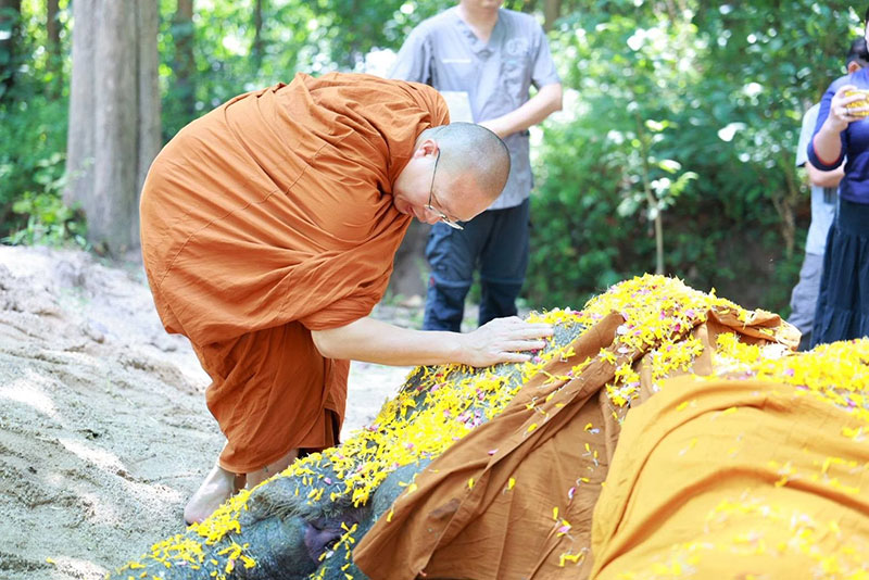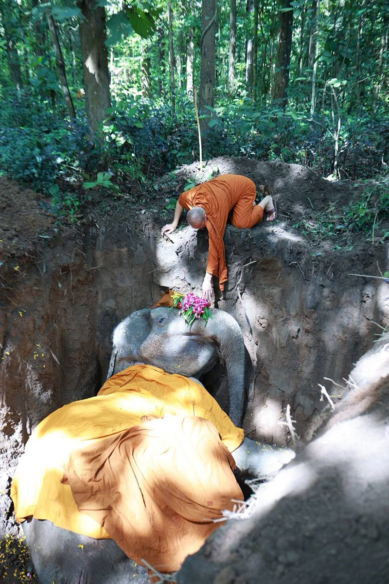 9 ตุลาคม 2568 ผู้สื่อข่าวรายงานว่า พระครูอ๊อดวัดเจดีย์หลวงวรวิหาร จังหวัดเชียงใหม่ พร้อมด้วยคณะสงฆ์จากวัดเจดีย์หลวงฯ ร่วมกับ สัตวแพทย์ ดร.ทวีโภค อังควานิช หัวหน้าฝ่ายอนุรักษ์ช้าง ศูนย์อนุรักษ์ช้างไทย สถาบันคชบาลแห่งชาติ องค์การอุตสาหกรรมป่าไม้ จังหวัดลำปาง ทีมสัตวแพทย์ ควาญช้าง และกลุ่มญาติธรรมของพระครูอ๊อด ร่วมประกอบพิธีส่งร่างและดวงวิญญาณของ “พลายบุญแสน” ช้างตระกูลแสน เชือกที่ 10 ซึ่งล้มลงอย่างสงบเมื่อเวลา 00.23 น. ของวันที่ 8 ตุลาคม 2568 รวมอายุได้ 61 ปี