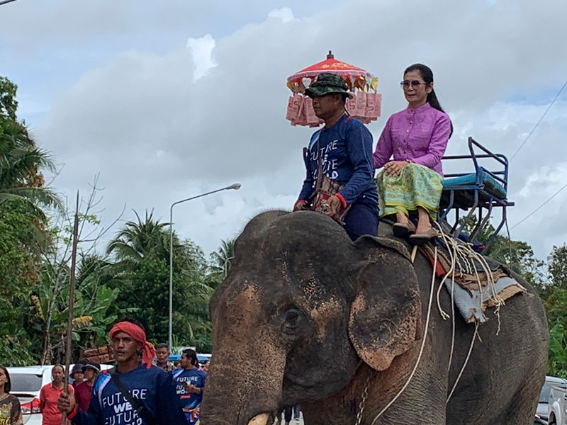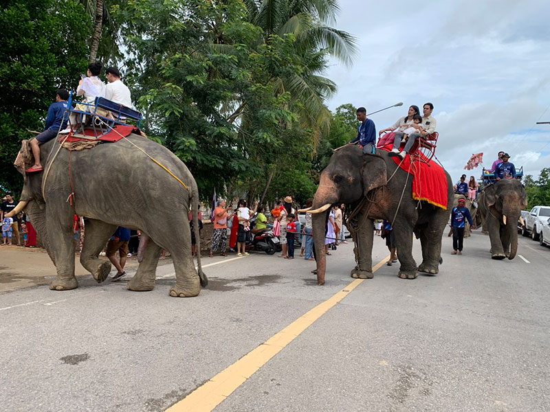 จัดใหญ่! ขบวนช้าง 12 เชือกร่วมแห่ผ้ากฐินและพุ่มกฐินสามัคคีไปยังที่พักสงฆ์ทุ่งชน อำเภอเมืองตรัง โดยมีชาวบ้านร่วมขบวนแห่นับพันคน ทำบรรยากาศคึกคักทั้งคนทั้งช้าง เชื่อลอดท้องช้างจะเสริมสิริมงคล แต่ตอนลงจากหลังช้างแต่ละเชือกต้องปีนบันไดลง ส่วนเงินที่ได้ในปีนี้จะนำไปสร้างโบสถ์ทดแทนหลังเก่าที่ชำรุด