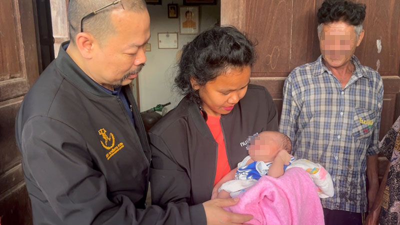 นายพนมเล่าว่า แม่ของเด็กอายุ 40 ปี หลังคลอดลูกเสร็จ ได้ทิ้งลูกไปตั้งแต่วันที่ 20 กันยายน 2568 ทำให้ต้องรับหน้าที่เลี้ยงดูลูกเอง โดยมีย่าและยายคอยช่วยเหลือในยามที่ต้องออกไปทำงานกรีดยาง