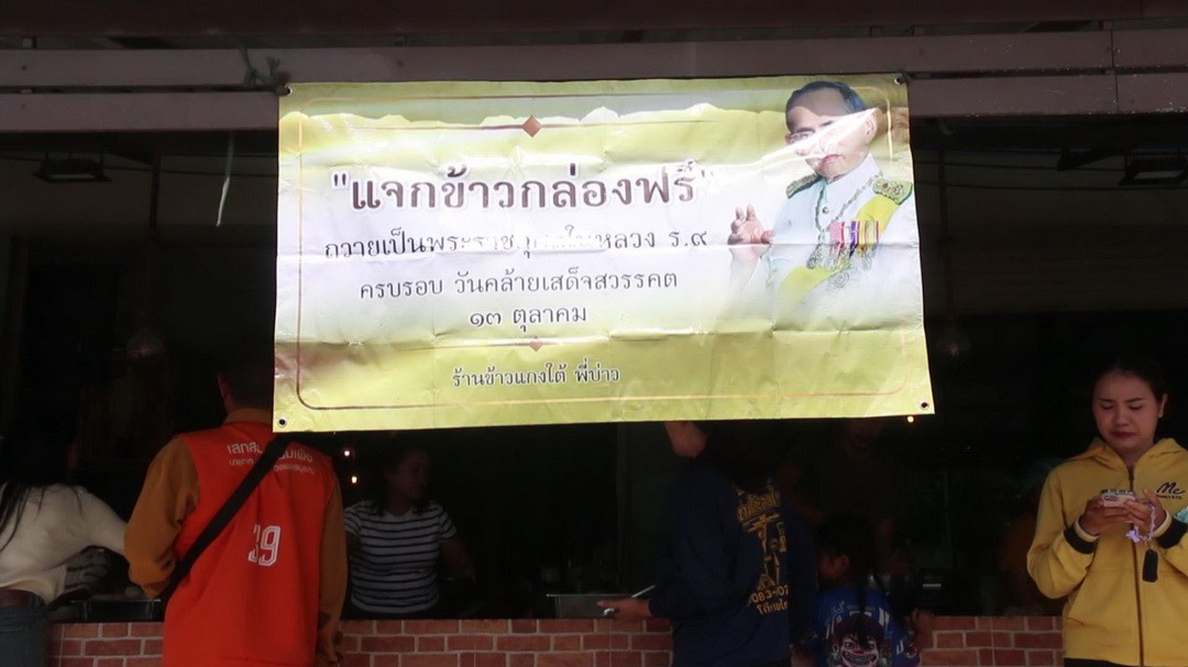วันที่ 13 ตุลาคม 2568 ผู้สื่อข่าวรายงานว่า ที่ร้าน ‘ข้าวแกงใต้ พี่บ่าว’ ถนนพระพุทธบาท ตรงข้ามเรือนจำจังหวัดเพชรบูรณ์ มีประชาชนจำนวนมากเดินทางมาเข้าคิวรอรับ ข้าวกล่องฟรี ที่ทางร้านจัดขึ้นเพื่อถวายเป็นพระราชกุศล เนื่องในวันคล้ายวันสวรรคตในหลวงรัชกาลที่ 9 หรือ วันนวมินทรมหาราช