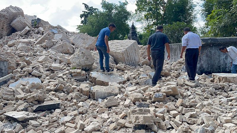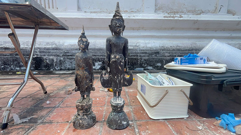 ลุยสแกนหาวัตถุโบราณ ใต้ซากพระธาตุโนนตาล พบพระพุทธรูปปางเปิดโลก 2 องค์ กรมศิลปากรเร่งเคลียร์พื้นที่
