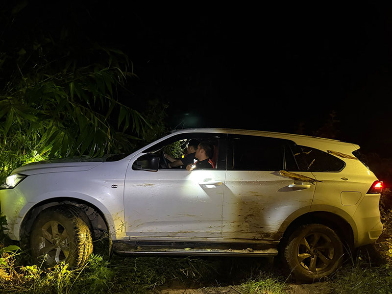 ต่อมาเวลา 23.40 น. เจ้าหน้าที่ตำรวจชุดจักรยานยนต์ไต่เขา ที่เดินทางจาก ทางเข้าบ้านแม่กะไน ค้นหาตามสัญญาน GPS จนพบนักท่องเที่ยว และรถยนต์คันดังกล่าว จอดติดหล่มไม่สามารถขับเคลื่อนย้ายได้ จึงได้ดำเนินการประสานช่วยเหลือจากนั้น เวลา 23.50 น. เจ้าหน้าที่ทั้ง 2 ชุด มาถึงจุดที่พบ จึงได้ช่วยกันดำเนินการเคลื่อนย้ายรถคันดังกล่าวฯได้สำเร็จ แล้วได้นำตัวนักท่องเที่ยวชาวต่างชาติกลับมาที่ตั้ง ในอำเภอแม่สะเรียงได้อย่างปลอดภัย สงสัยทำไมไม่ปักหมุดมาเส้นทาง ทล.108 ที่สะดวกและปลอดภัยเพียงแค่ 22 กิโลเมตรเท่านั้น