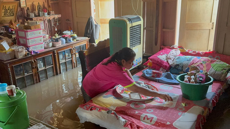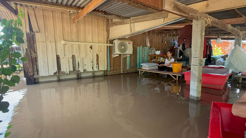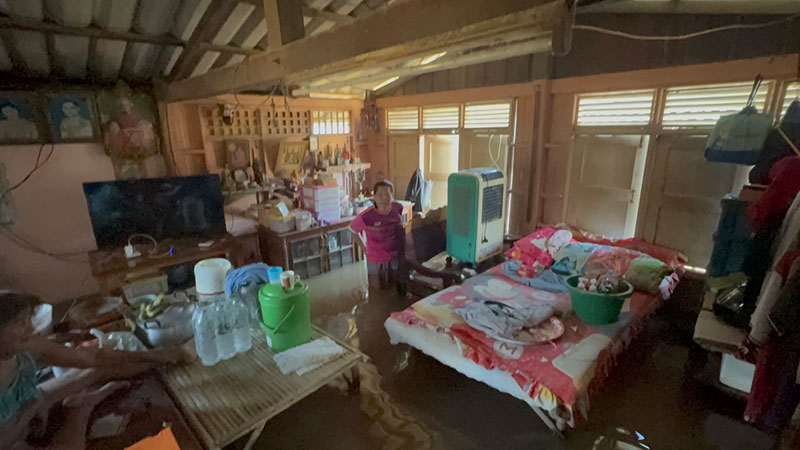 ซึ่งภายในบ้านพบว่าพื้นบ้านน้ำท่วมสูง 60-70 เซนติเมตร และยังพบว่ามีชาวบ้านที่เป็นห่วงบ้านยังคงอาอยู่อาศัยกินอยู่หลับนอน ภายในบ้านที่น้ำท่วมสูง โดยใช้แคร่ไม้และเตียงนอน ที่ทางอบต.โผงเผง นำมาให้ทำเป็นที่อยู่อาศัยกินอยู่หลับนอนภายในบ้าน และมีบางรายที่ออกไปนอนด้านนอกที่ทาง อบต.โผงเผง นำเต้นท์มาไว้ให้พักชั่วคราว