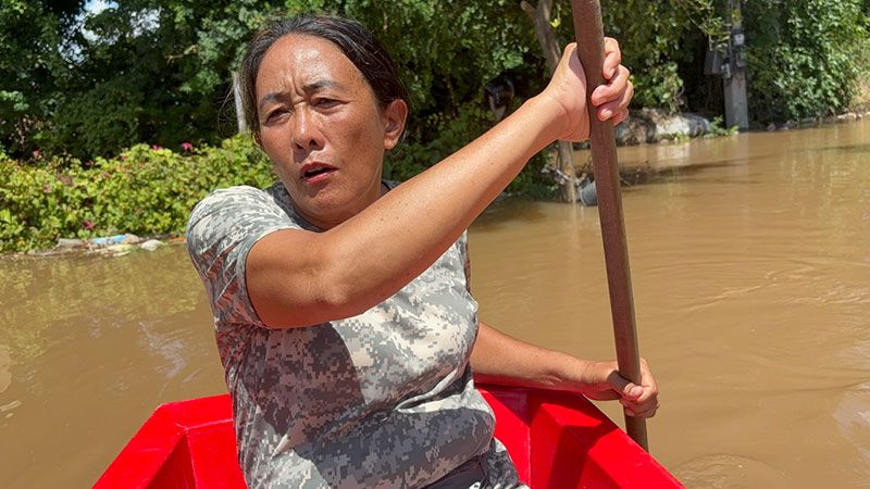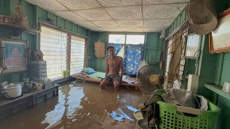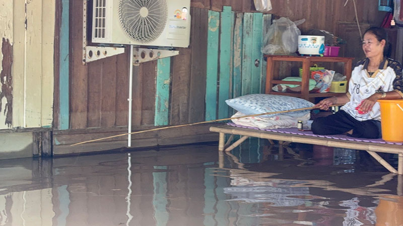 ทางด้าน นางสาวขวัญใจ เหล็กเข้ม อายุ 60 ปี บ้านเลขที่ 66 หมู่ 7 ตำบลโผงเผง ที่อยู่ภายในบ้านที่น้ำท่วมขังกินอยู่หลับนอนอยู่ภายในบ้านมานานหลายสัปดาห์ ในเวลาว่างนั่งอยู่บนแคร่ใช้เบ็ดตกปลา ได้ปลาซิวปลาสร้อยหลายตัว นำไปทำอาหารก็พอรับประทาน