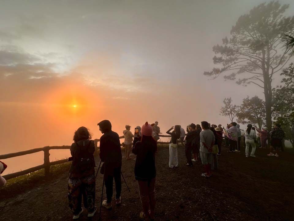 20 ตุลาคม 2568 ผู้สื่อข่าวรายงานจาก จ.เลย ว่า บรรยากาศบนยอดภูเรือ จ.เลย คึกคักตั้งแต่เช้าตรู่ เมื่อนักท่องเที่ยวจำนวนมากเดินทางขึ้นมาชม “ทะเลหมอกยามเช้า” และ “แสงแรกของวัน” ท่ามกลางอุณหภูมิเย็นสบาย 15 องศาเซลเซียส แสงทองสาดกระทบทะเลหมอกสีขาวท่ามกลางทิวเขาสลับซับซ้อน สายหมอกค่อยๆ เคลื่อนผ่านยอดภูเรืออย่างอ่อนโยน นักท่องเที่ยวต่างเพลิดเพลินกับการชมหมอกแบบรอบทิศ 360 องศา โต้ลมหนาว พร้อมเก็บภาพความประทับใจอย่างตื่นเต้นและสนุกสนาน