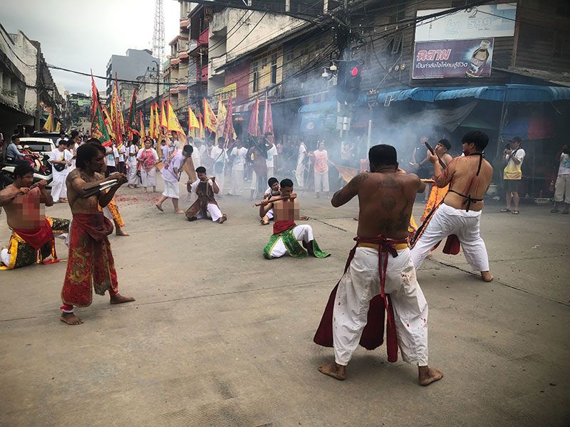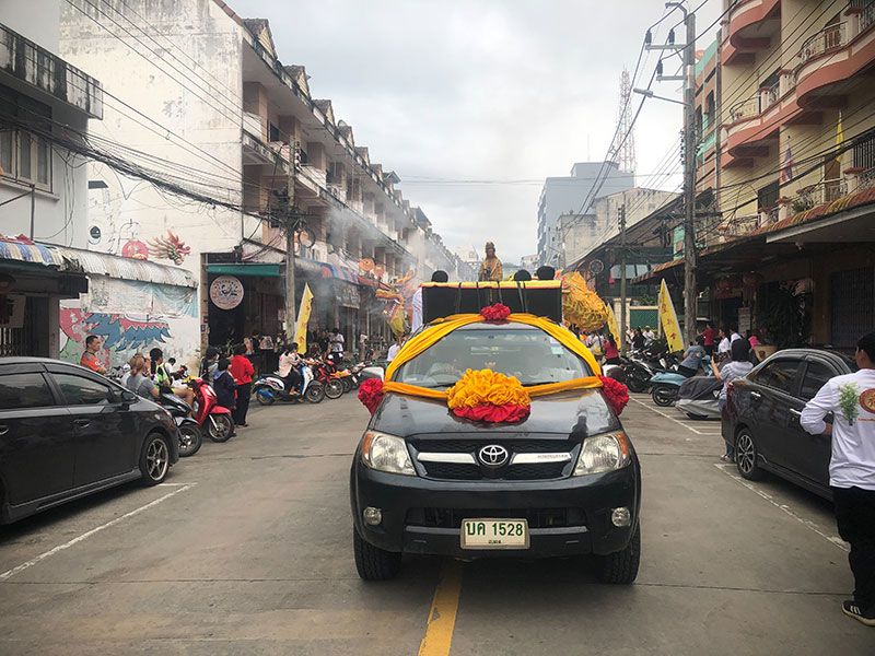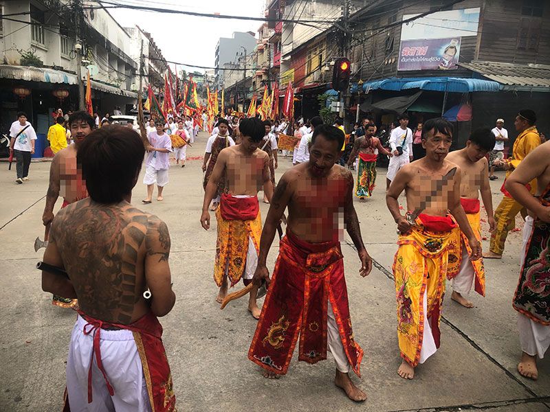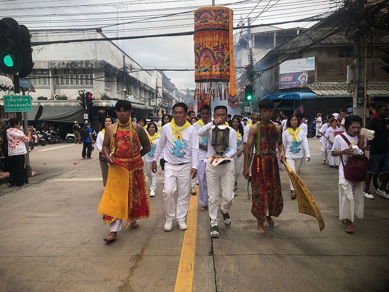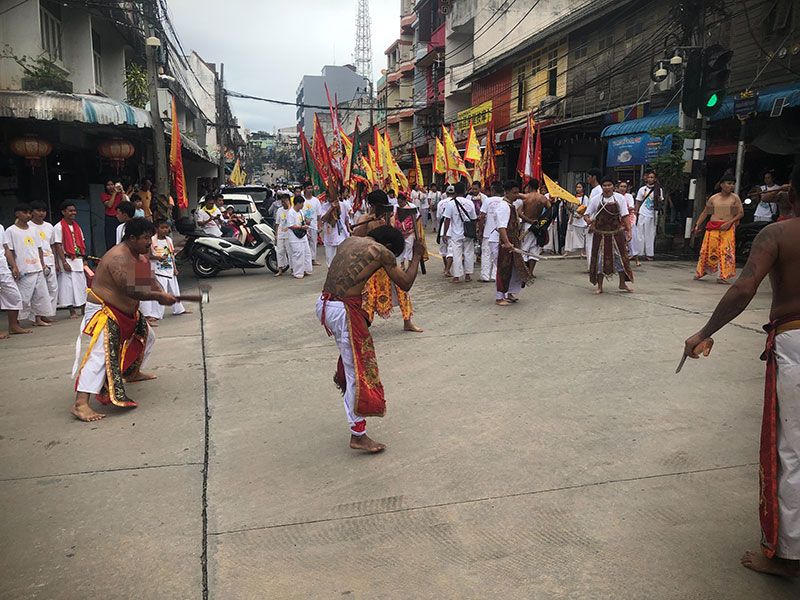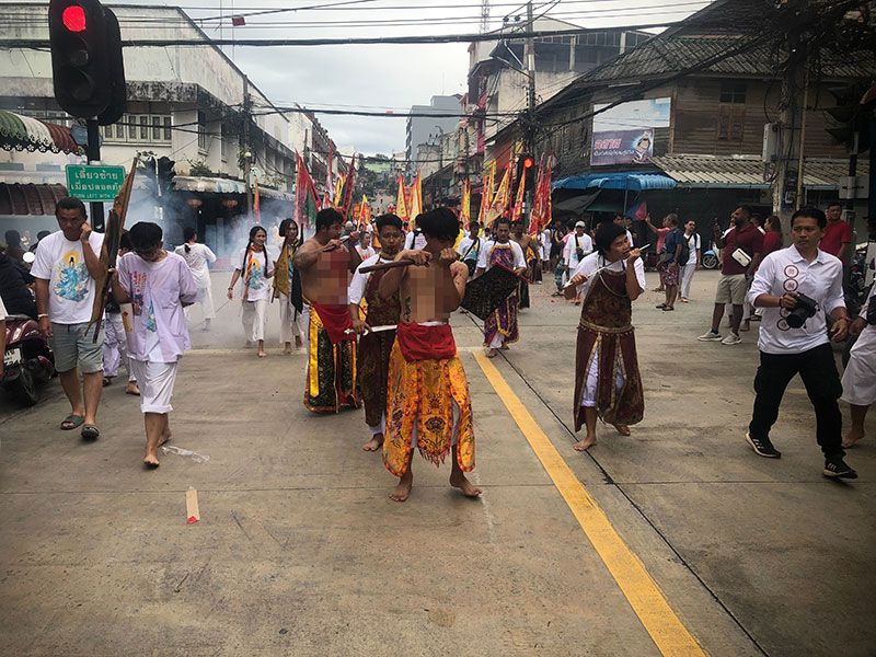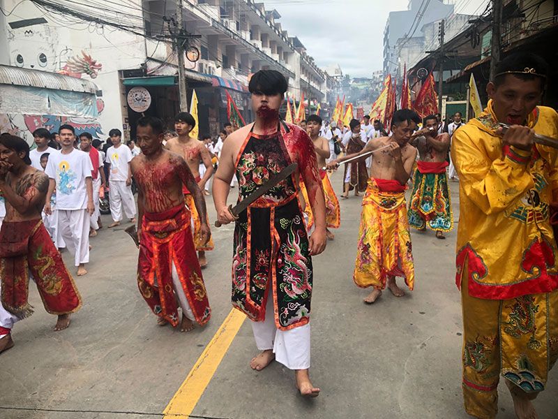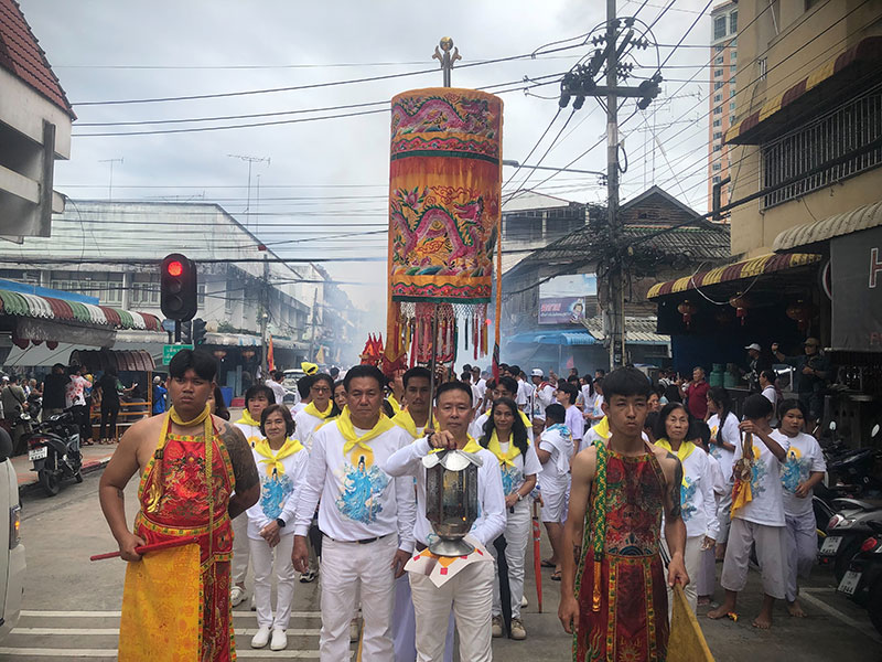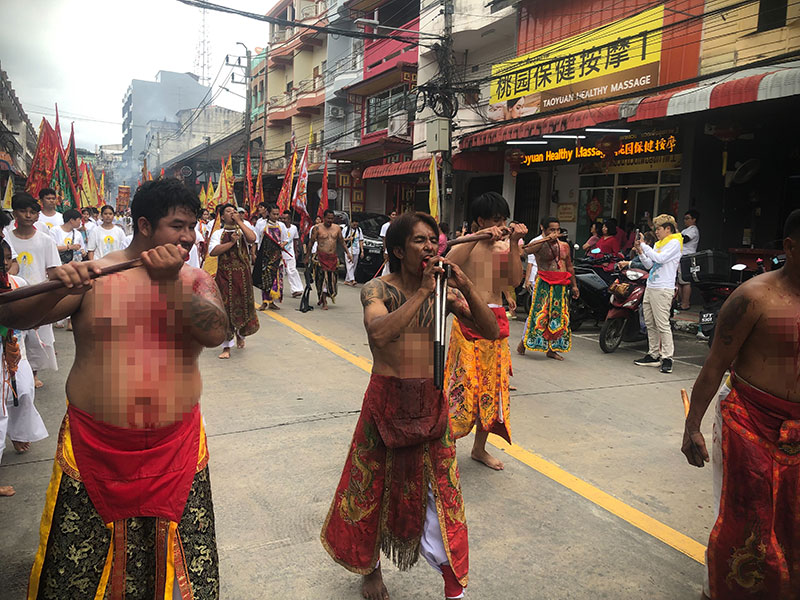โดยมีม้าทรงกว่า 100 ชีวิต ประกอบพิธีทรงเจ้า แสดงอิทธิฤทธิ์ปาฏิหาริย์ ด้วยการประกอบพิธีทรมานร่างกาย ทั้งการใช้สิ่งของมีคมแทงตามร่างกาย ซึ่งมีชาวไทยเชื้อสายจีนทั้งไทยและมาเลเซียเข้าร่วมชมพิธีเป็นจำนวนมาก โดยขบวนแห่ม้าทรงจะเดินไปตามถนนกลางเมืองเบตง และในย่านเศรษฐกิจในอำเภอเบตง เพื่อให้พรแก่พี่น้องประชาชนที่มารับขบวนแห่เจ้า