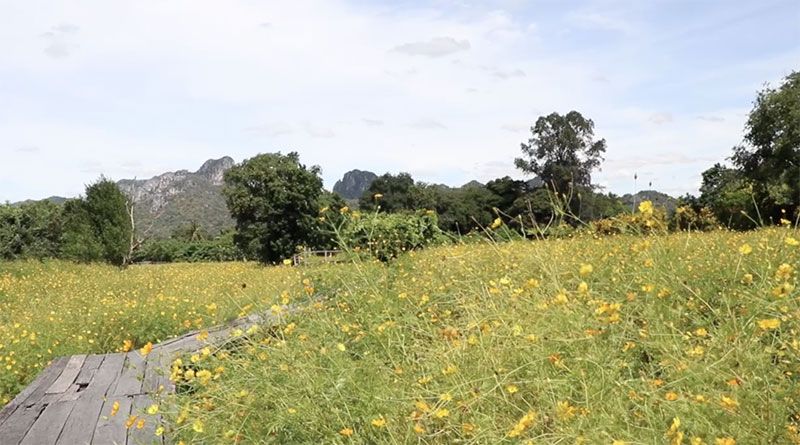 ซึ่งความพิเศษของทุ่งดอกคอสมอสที่นี่ นอกจากความตระการตาของดอกคอสมอสสีเหลืองทองนับร้อยต้นแล้ว ยังมีมุมถ่ายรูปสวยๆ อย่างสะพานไม้ที่ทอดยาวออกไปเป็นทางเดินชมทุ่งและจุดถ่ายรูปที่สวยงามมากๆ เพราะวิวแบ็คกราวด์ด้านหลังคือเขาจีนแลอันยิ่งใหญ่ที่โอบล้อมทุ่งดอกไม้แห่งนี้ไว้ รับรองว่าใครที่มาเที่ยวที่นี่จะได้ภาพสวยๆ กลับไปเป็นความทรงจำแน่นอน ซึ่งช่วงวันหยุดนี้ยังไม่มีที่เที่ยวแวะมาเที่ยวชมกันได้นะครับ โดยทางร้านคิดค่าเข้าชมสวนดอกคอสมอสคนละ20บาทเท่านั้น.