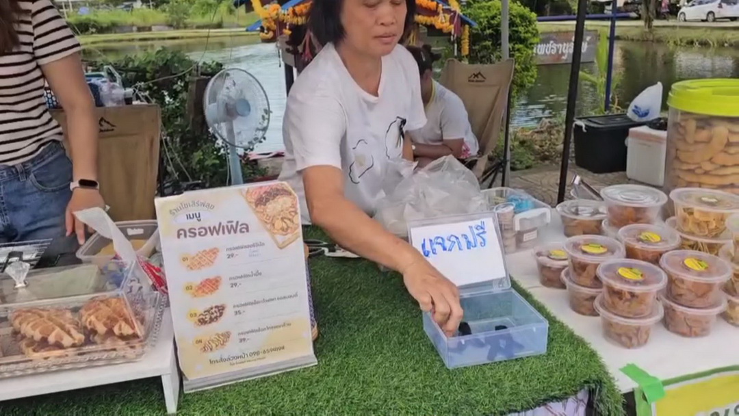 น้ำใจคนวิเชียรบุรี! สองแม่ค้าขนม-มะขามแช่อิ่ม แจก ‘ริบบิ้นดำ’ ถวายอาลัย ‘สมเด็จพระพันปีหลวง’