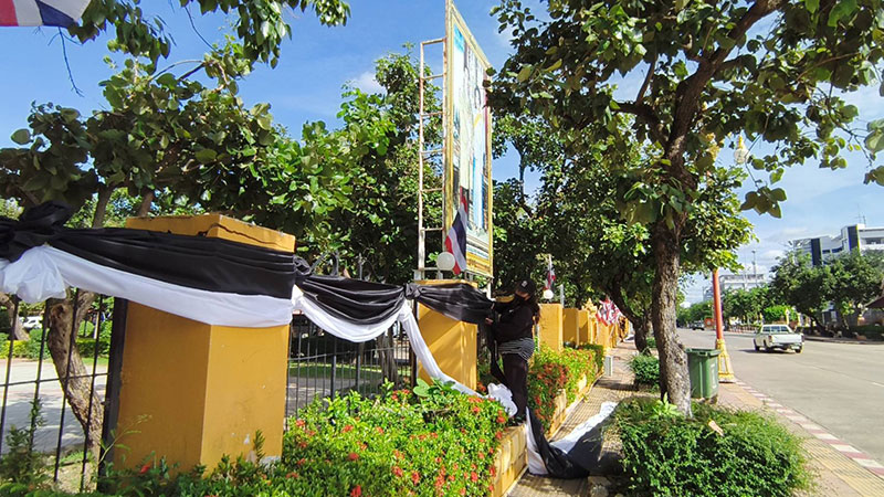 ขณะเดียวกัน บรรยากาศภายในศาลากลางจ.อุดรธานีและหน่วยงานราชการต่าง ๆ เจ้าหน้าที่ต่างช่วยกันประดับ ผ้าระบายสีขาว-ดำ บริเวณด้านหน้าอาคารและริมรั้ว เพื่อแสดงออกถึงความอาลัยอย่างสมพระเกียรติ
