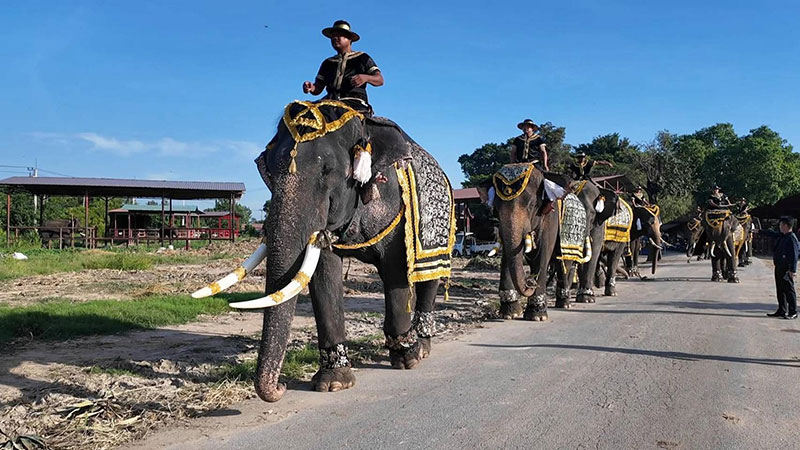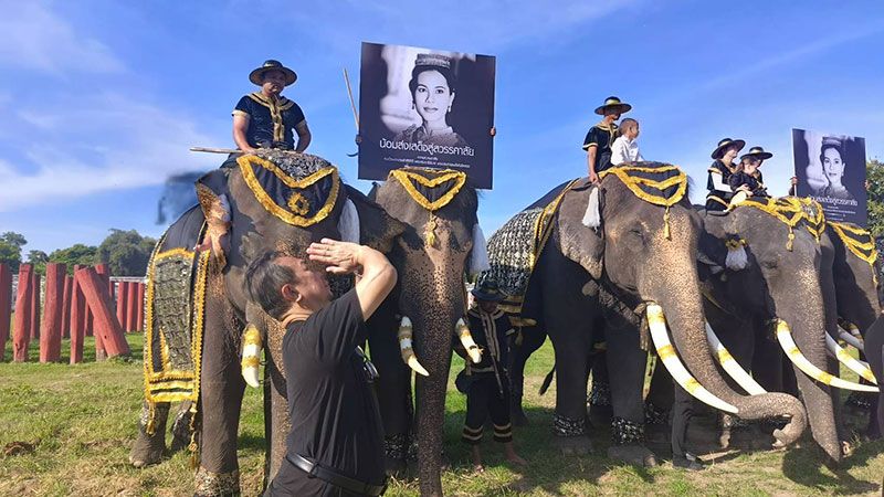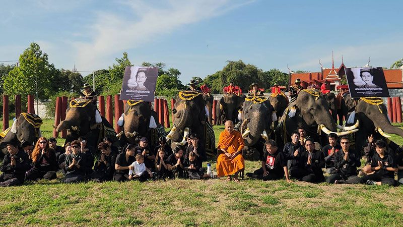 “วังช้างอยุธยา แล เพนียด”นำช้าง 9 เชือก ยืนสงบนิ่ง แสดงความอาลัยน้อมรำลึกพระมหากรุณาธิคุณ สมเด็จพระนางเจ้าสิริกิติ์พระบรมราชินีนาถ พระบรมราชชนนีพันปีหลวง
