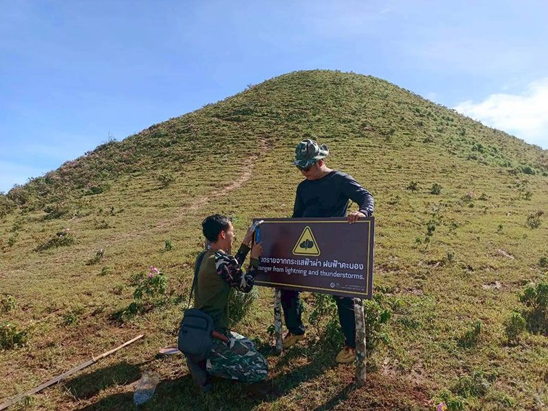 - หลีกเลี่ยงการเดินป่าหรือทำกิจกรรมกลางแจ้งในช่วงที่มีฝนตกหนัก ฟ้าร้อง หรือมีพายุ หากเกิดฟ้าคะนอง ห้ามยืนอยู่กลางพื้นที่โล่ง ใต้ต้นไม้ใหญ่ หรือใกล้วัตถุโลหะ เช่น เสาไฟ เต็นท์โลหะ รั้วเหล็ก