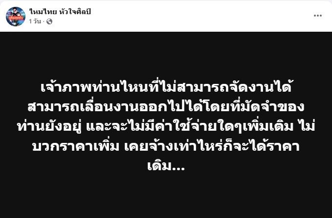 อ้ายไหมไทยใจหล่อ! แจ้งเจ้าภาพเลื่อนงานได้ไม่หักมัดจำ ไม่มีค่าใช้จ่ายเพิ่ม เคยจ้างเท่าไหร่เล่นให้ราคาเดิม