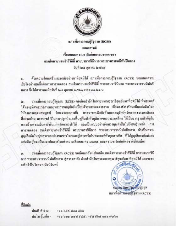 ‘กองกำลังชาติพันธุ์’พร้อมใจแถลงการณ์ แสดงความอาลัยถวาย‘สมเด็จพระพันปีหลวง’