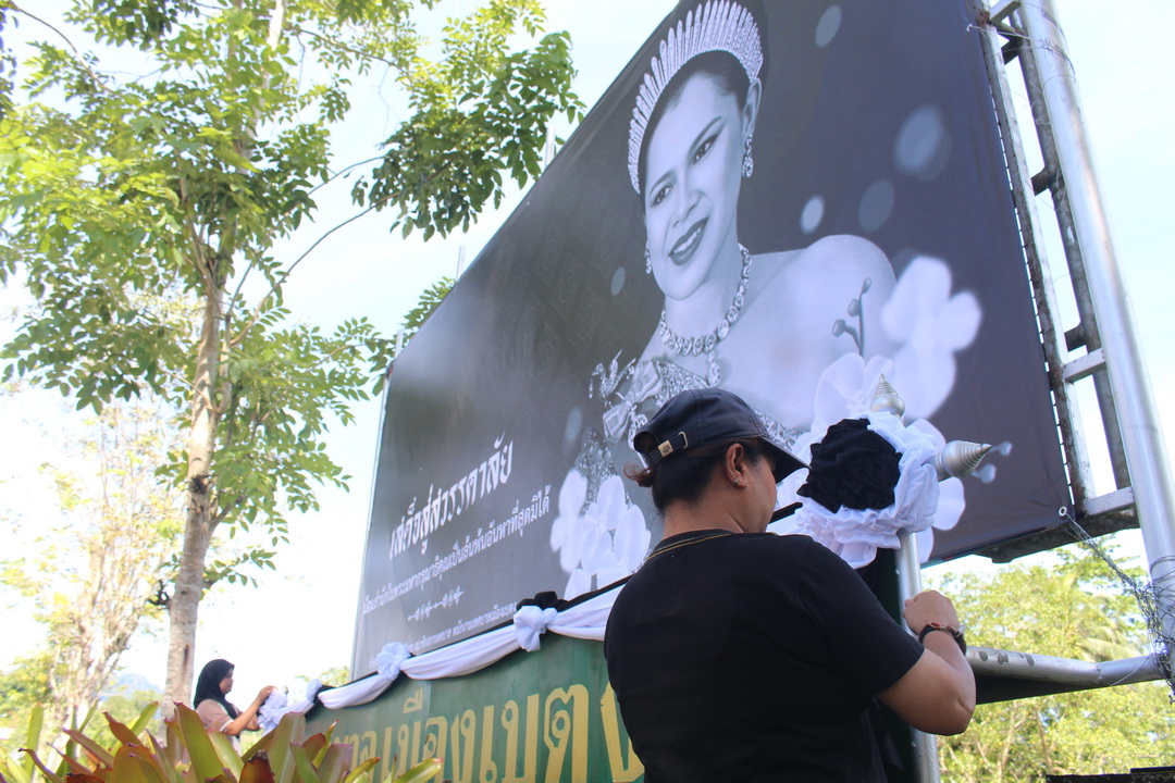 โดยพนักงานเทศบาลเมืองเบตงได้เร่งผูกผ้าขาว – ดำ ตามอาคารสถานที่ราชการ เพื่อแสดงความอาลัยแด่พระองค์ท่านผู้เปรียบเสมือนแม่ของแผ่นดิน