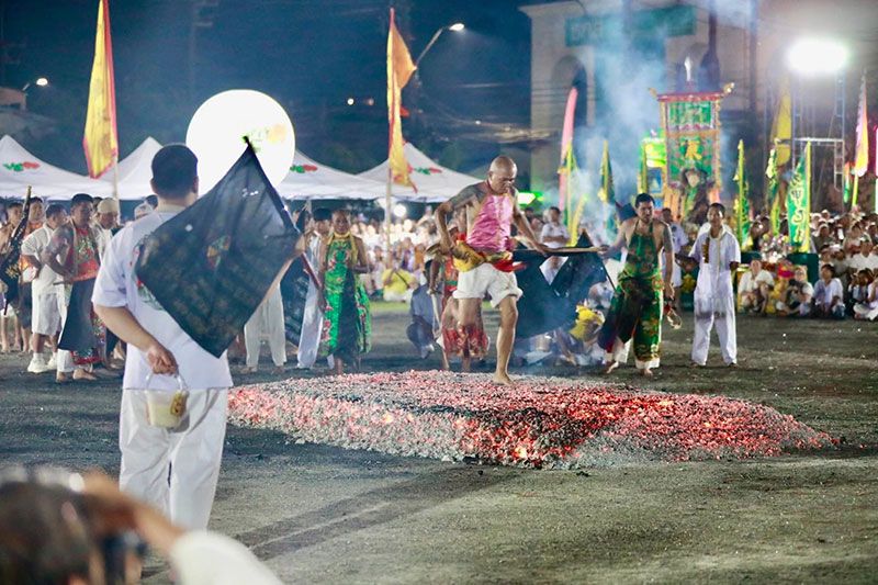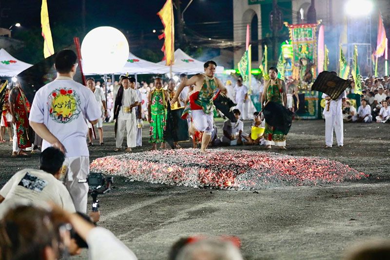 อย่างไรก็ตาม ก่อนเข้าสู่พิธีลุยไฟได้มีการอัญเชิญองค์กิ้วอ๋องไต่เต่ จากศาลเจ้าจุ้ยตุ่ยเต้าโบ้เก้ง มายังบริเวณพิธีเพื่อให้พรแก่ร่างทรง หรือม้าทรง และผู้ที่เข้าร่วมพิธีดังกล่าว.