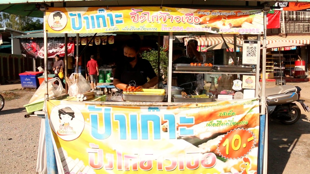 นายนิรัตน์ อายุ 43 ปี เจ้าของร้าน ‘ปิ้งไก่ข้าวเบือป้าเก๊าะ’ เปิดเผยว่า ตนสืบทอดการทำปิ้งไก่ข้าวเบือจากคุณแม่มากว่า 15 ปีแล้ว ซึ่งคุณแม่ขายมาก่อนหน้านั้นถึง 15 ปี รวมแล้วร้านนี้อยู่คู่พื้นที่มานานกว่า 30 ปี
