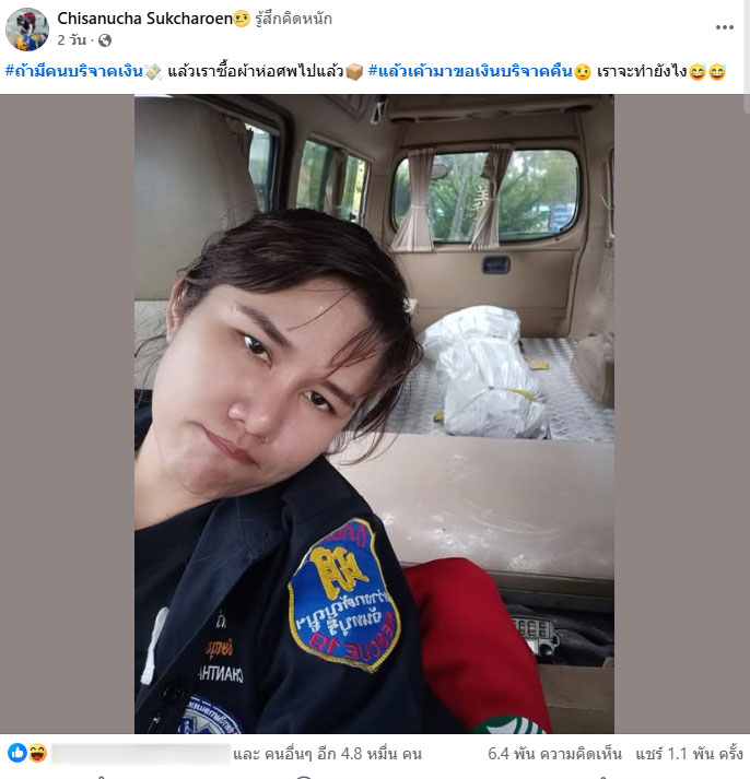 ให้แล้วให้เลย? กู้ภัยสาวโพสต์ถามใจชาวเน็ต ถ้าซื้อ "ผ้าห่อศพ" แล้วถูกขอเงินบริจาคคืน จะทำอย่างไร
