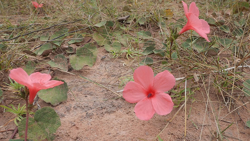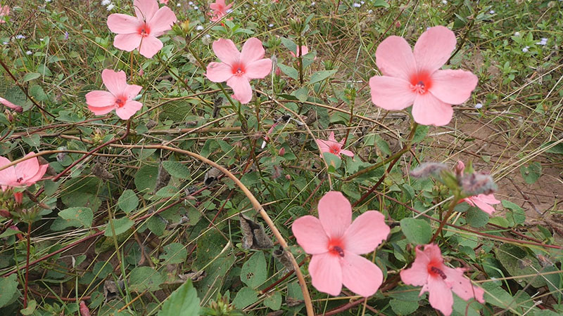 สำหรับ “ต้นไก่โอก” มีชื่ออย่างเป็นทางการว่า “ต้นทองพันดุล” เป็นต้นดอกไม้ป่าที่มีดอกคล้ายชบา กลีบดอกเป็นสีชมพูอมเหลือง บางต้นเป็นสีส้ม เป็นไม้เลื้อยที่ขึ้นเองตามธรรมชาติ ออกดอกเพียงปีละครั้ง ในช่วงปลายฝนต้นหนาวเดือนพฤศจิกายน - ธันวาคม ในอดีตพบมากในพื้นที่ภาคตะวันออกเฉียงเหนือ แต่ปัจจุบันเริ่มมีให้เห็นน้อยแล้ว.