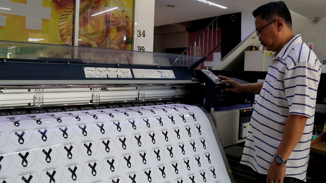 นายนิกร ศิริสวัสดิ์ เจ้าของร้านเคอาร์ต เปิดเผยด้วยน้ำเสียงสั่นเครือว่า ปกติร้านของตนจะร่วมทำกิจกรรมจิตอาสาเพื่อสังคมฟรีมาโดยตลอด และครั้งนี้ก็ตั้งใจทำสติ๊กเกอร์ริบบิ้นดำขึ้นมาเพื่อแจกฟรีให้กับทุกคน เพราะรู้สึก สำนึกในพระมหากรุณาธิคุณ ของสมเด็จพระบรมราชชนนีพันปีหลวง ที่ทรงปฏิบัติพระราชกรณียกิจเพื่อประโยชน์สุขของพสกนิกรชาวไทย