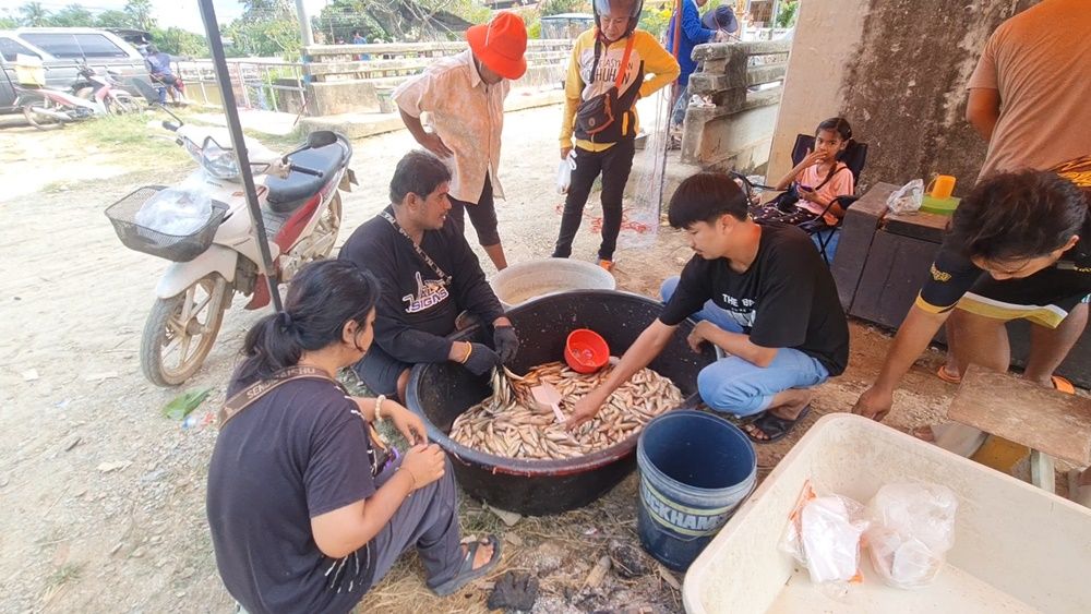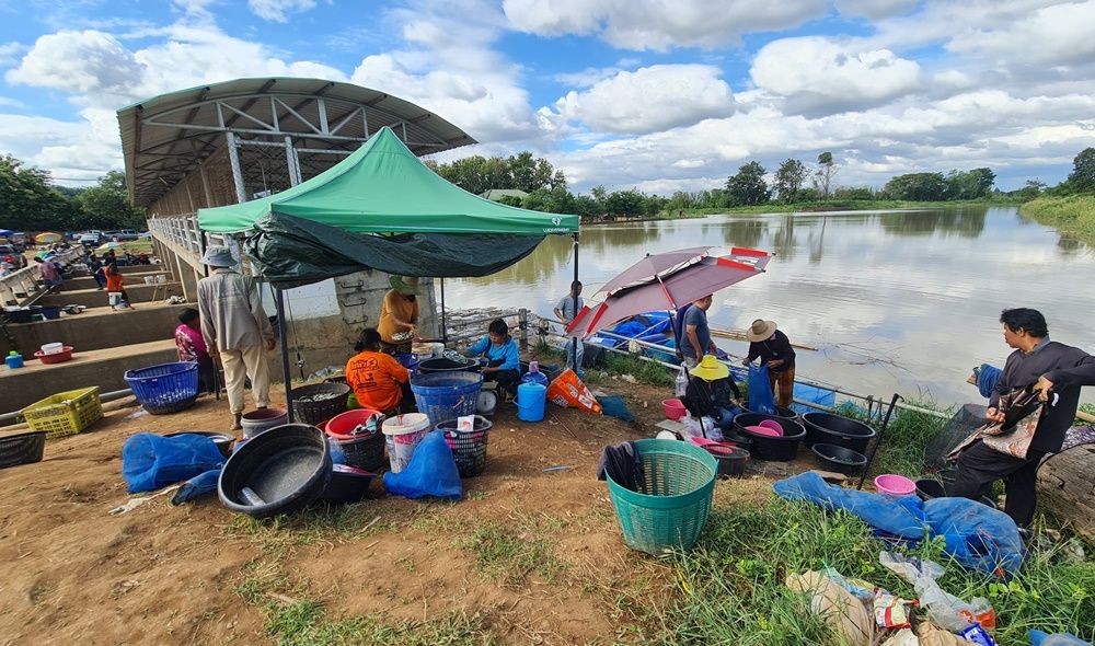 ขณะที่บริเวณประตูระบายน้ำบ้านยางซ้าย หมู่ 5 ต.ยางซ้าย อ.เมืองสุโขทัย ก็คึกคักเช่นกัน ชาวบ้านทั่วสารทิศแห่มาจับปลาแม่น้ำยมกันอย่างสนุกมือ พ่อค้าแม่ค้าขับรถมารับซื้อปลาสดๆกันถึงที่ มีปลาสารพัดชนิด โดยเฉพาะปลาหมูอ้น ไซส์ใหญ่ คนแย่งกันซื้อหิ้วกลับบ้านทำเมนูเด็ด “ต้มยำ-ทอดน้ำปลา” ในราคากิโลกรัมละ 350 บาท จนหมดเกลี้ยง ไม่พอขาย