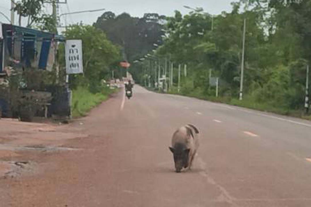 ส่วน น.ส.อินทิรา ฝักสกุล แม่ค้าริมทาง กล่าวว่า หมูตัวนี้เป็นหมู่เพื่อนบ้าน เดินมาประมาณ 2-3 กม. เช้าเราตื่นมาปรุงหม้อก๋วยเตี๋ยวก็เห็นหมูเดินมา พอมาเจอฝูงวัวก็มาอยู่กับฝูงวัว มาเล่นกับวัว แต่ไม่มีพิษภัยกับใคร รถวิ่งผ่านไปผ่านมาเขาก็จอดดู