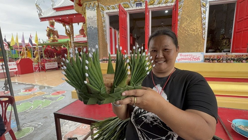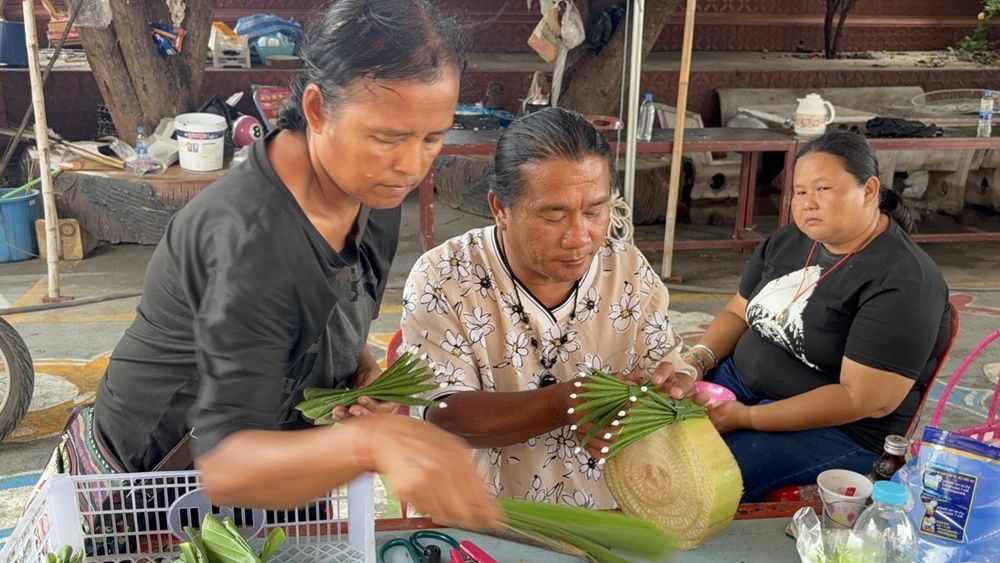 วันที่ 4 พ.ย.68 ที่บริเวณวัดสนามชัย ตำบลตลาดหลวง อำเภอเมือง จังหวัดอ่างทอง ชาวบ้านและญาติโยม ผู้ใจบุญ ได้นำวัสดุจากธรรมชาติ ต้นกล้วย ใบตอง ดอกไม้ ธูปเทียน มาจากบ้านแล้วร่วมด้วยช่วยกัน ทำกระทงถวายวัดอย่างตั้งใจ โดยทำมาติดต่อกันหลายปีแล้ว เป็นการประดิษฐ์กระทงที่สวยงาม เน้นทำจากกธรรมชาติ เพื่อให้ทางวัดได้จำหน่ายขายในช่วงเทศกาลวันลอยกระทง เพื่อให้พุทธศาสนิกชน ได้บูชาส่งเสริม อนุรักษ์ สืบสาน วัฒนธรรม ประเพณีอันดีงาม ลอยกระทงเปรียบเสมือนได้ทำพิธีปล่อยเคราะห์กรรม ขอขมาต่อแม่พระคงคา ซึ่งการทำกระทงทำจากวัสดุย่อยสลายจากธรรมชาติ เคราะห์กรรมก็จะย่อยสลายไปตามกระทง แล้วนำเงินรายได้จากการขายกระทงเข้าวัดปฏิสังขรต่อไป