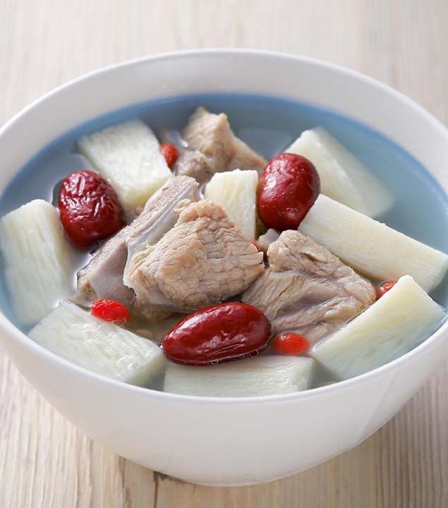 • ระหว่างฉายรังสี ใช้อาหารและสมุนไพรที่ช่วยบำรุงสารน้ำ บรรเทาภาวะปากแห้ง คออักเสบ และลดผลกระทบต่ออวัยวะภายใน
