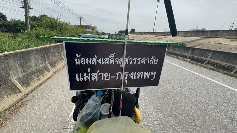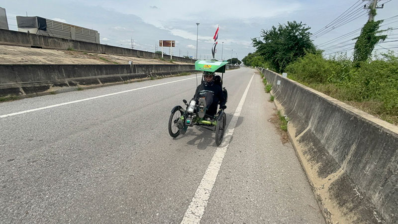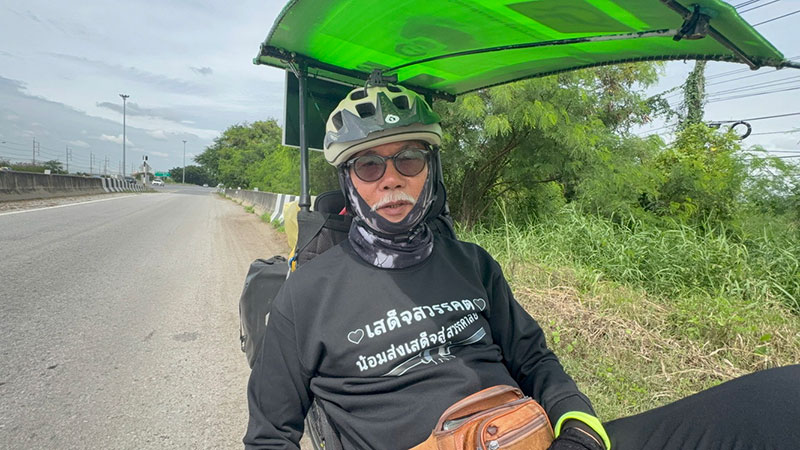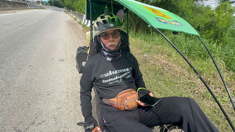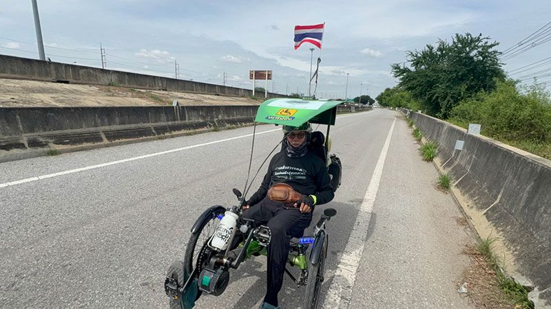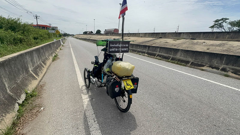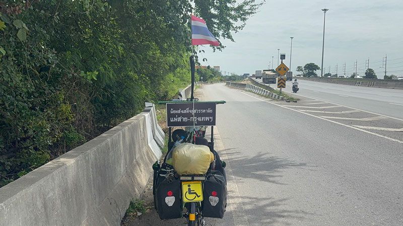 ชายพิการ กล้ามเนื้ออ่อนแรง หลังป่วยเส้นเลือดในสมอง "ปั่นจักรยาน จากสิงห์บุรี ขึ้นไปแม่สายจังหวัดเชียงราย เดินทางเข้ากรุงเทพ ตอนนี้ระยะทาง 1,500 กม. มากราบพระบรมศพ