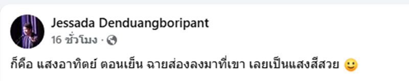ล่าสุด รศ.ดร.เจษฎา เด่นดวงบริพันธ์ อาจารย์ประจำภาควิชาชีววิทยา คณะวิทยาศาสตร์ จุฬาลงกรณ์มหาวิทยาลัย และนักสื่อสารวิทยาศาสตร์ โพสต์ข้อความผ่านเฟซบุ๊กเพจให้ความรู้ถึงเรื่องนี้โดยระบุว่า "ก็คือ แสงอาทิตย์ ตอนเย็น ฉายส่องลงมาที่เขา เลยเป็นแสงสีสวย"