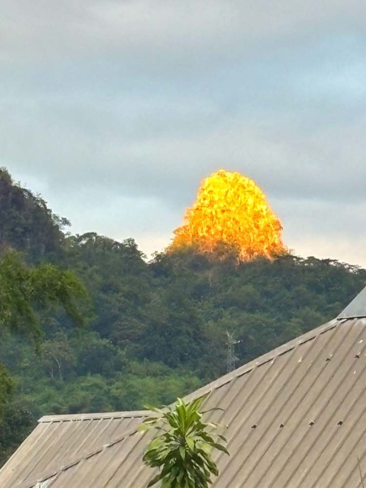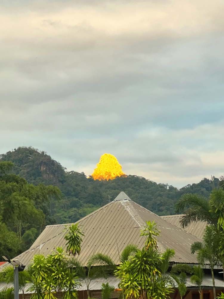 วันที่ 7 พฤศจิกายน 2568 จากกรณีโลกออนไลน์แชร์ภาพจากเพจเฟซบุ๊ก ฟาร์มอ้น สังขละบุรี เผยภาพปรากฏการณ์แปลกประหลาด ยอดเขาแหลม ต.ท่าขนุน อ.ทองผาภูมิ จ.กาญจนบุรี กลายเป็นสีทอง ซึ่งสามารถมองเห็นด้วยตาเปล่าชัดเจนนานถึง 5 นาที ก่อนที่จะกลับสู่สภาพเดิม ซึ่งเหตุเกิดเมื่อเวลา 17.45 น. เมื่อวันที่ 5 พ.ย. 68 ซึ่งมีผู้เข้ามาแสดงความคิดเห็นจำนวนมาก ถือว่าเป็นเรื่องแปลกอัศจรรย์สมกับชื่อเมืองทองผาภูมิ