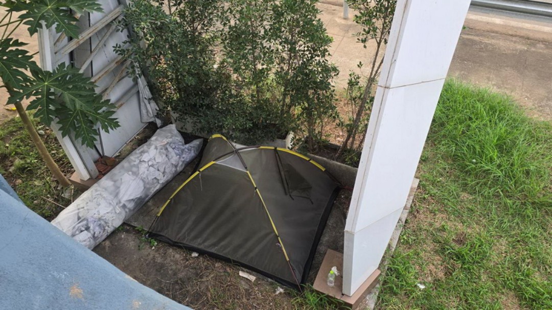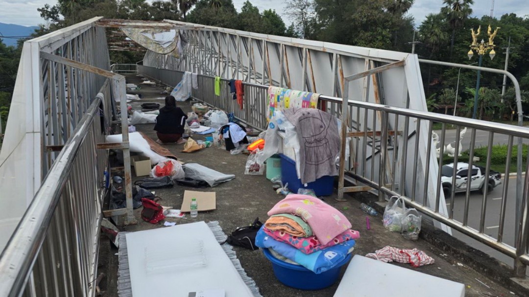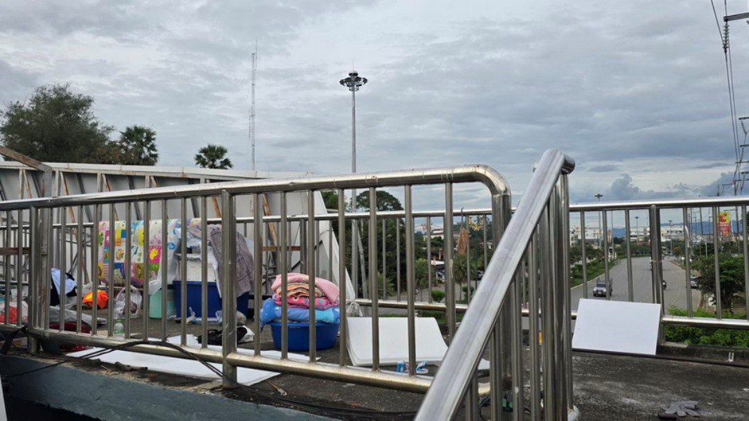 จุดเสี่ยง! สองผัวเมียไร้บ้าน ‘ตั้งเต็นท์’ บนสะพานลอยกลางเมืองหล่มสัก กีดขวางทางเดิน-หวั่นเด็กนักเรียนไม่ปลอดภัย