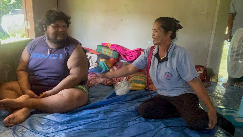 นำทีมอายุรแพทย์ นักโภชนาการ รวมทั้งเจ้าหน้าที่กลุ่มงานส่งเสริมสุขภาพ บุคลากรทางการแพทย์ สาธารณสุขในพื้นที่ เยี่ยมอาการน้องลูกชิ้น-นายแสงตะวัน วันทา อายุ 16 ปี ณ บ้านเลขที่ 7 หมู่ 8 บ้านหนองกุดแคน ต.พระกลางทุ่ง นักเรียนชั้น ม.3 โรงเรียนดงดาวแจ้งพัฒนาศึกษา ต.เรณูใต้ อ.เรณูนคร จ.นครพนม ที่มีน้ำหนักตัวมากถึง 183 กิโลกรัม ลักษณะขาไม่มีแรง ไม่สามารถเดินได้เป็นเวลา 3 เดือนแล้ว จึงต้องหยุดพักการเรียน โดยมีนางดวงดาว ถาวร อายุ 52 ปี แม่เลี้ยงเดี่ยวคอยดูแลลูกชายอย่างใกล้ชิด ทำให้ขาดรายได้จุนเจือครอบครัว แต่ไม่ขอเปิดรับบริจาค ต้องการให้หน่วยงานที่เกี่ยวข้อง นำลูกชายไปรักษา เพื่อให้กลับมาใช้ชีวิตได้ตามปกติเท่านั้น ตามที่เสนอข่าวไปแล้ว
