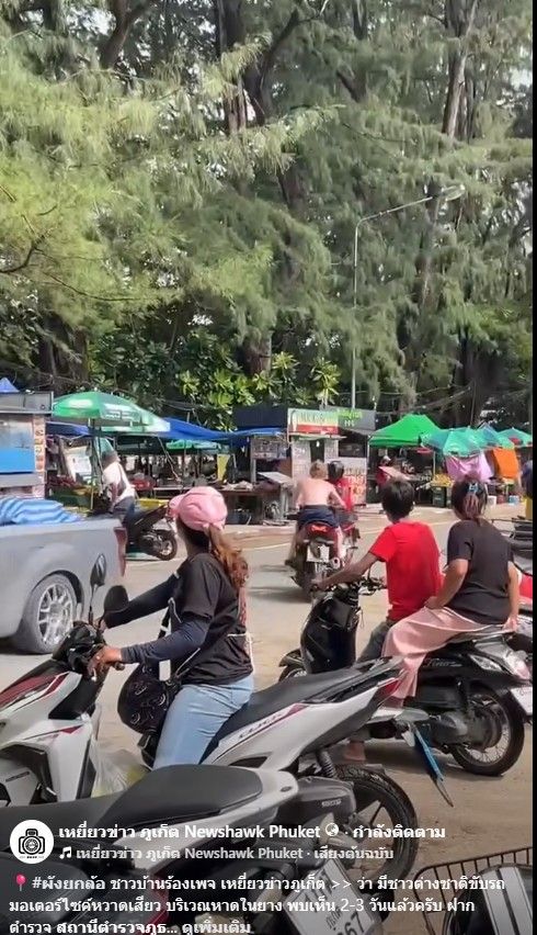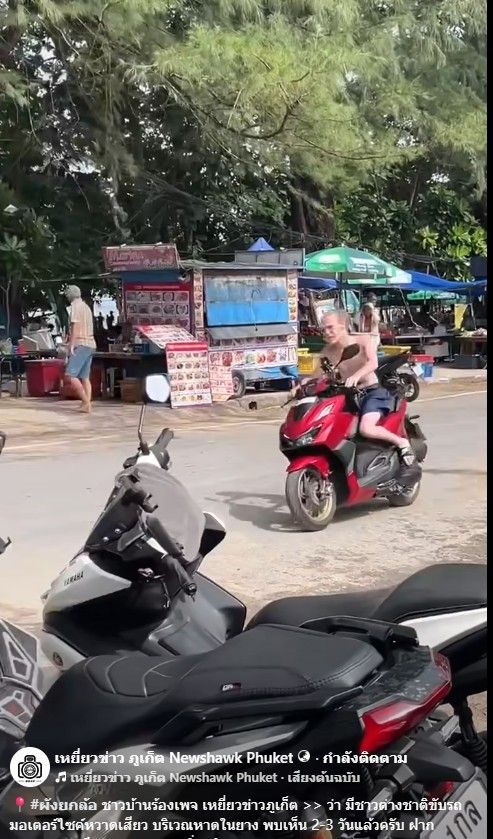 เมื่อวันที่ 11 พ.ย.2568 เพจเฟซบุ๊ก "เหยี่ยวข่าว ภูเก็ต Newshawk Phuket" ได้โพสต์คลิปวิดีโอชาวต่างชาติรายหนึ่งที่ขับขี่รถมอเตอร์ไซต์อย่างหวาดเสียว โดยขี่ไปขี่มาบริเวณหาดในยาง จ.ภูเก็ต เสี่ยงเกิดอันตรายต่อประชาชาชน และนักท่องเที่ยวในพื้นที่ พร้อมระบุข้อความว่า "ผังยกล้อ ชาวบ้านร้องเพจ เหยี่ยวข่าวภูเก็ต ว่า มีชาวต่างชาติขับรถมอเตอร์ไซค์หวาดเสียว บริเวณหาดในยาง พบเห็น 2-3 วันแล้วครับ ฝากตำรวจ สถานีตำรวจภูธรสาคู ช่วยดำเนินการด้วยครับ ชาวบ้านเกรงว่าจะเกิดอันตรายกับคนใช้ถนน"