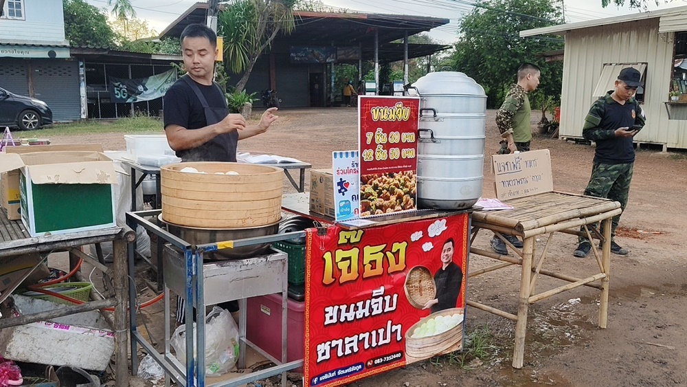 ที่ร้าน “เจ๊ธง ขนมจีบซาลาเปา” บ้านภูมิซรอล ของนายธงธินันท์ รัตนศรีรังกูล ซึ่งมีลูกค้าทั้งในและนอกพื้นที่แวะเวียนมาอุดหนุนอย่างต่อเนื่อง ขณะนี้กลายเป็นจุดส่งต่อกำลังใจให้ทหารชายแดน โดยเจ้าของร้านจัดทำ “ขนมจีบ–ซาลาเปา แจกฟรี” แจกให้เจ้าหน้าที่ทหารที่ปฏิบัติหน้าที่ในพื้นที่ พร้อมโพสต์เรื่องราวผ่านโซเชียลของตนเอง จนมีผู้พบเห็นจำนวนมากร่วมสมทบทุน สนับสนุนให้ร้านจัดทำและส่งมอบให้ทหารได้ทานฟรีอย่างต่อเนื่อง