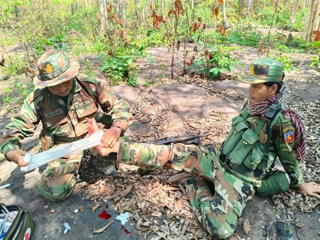 เมื่อวันที่ 17 พ.ย.2568 เพจเฟซบุ๊ก "Army Military Force" ได้โพสต์ภาพทหารเขมรได้รับบาดเจ็บที่เท้า โดยระบุข้อความว่า "17 พ.ย. - มีรายงานว่า ทหารกัมพูชาที่ประจำการอยู่แนวรบพระวิหาร ได้เหยียบตะปูเรือใบที่ตนเองวางไว้ จนทะลุรองเท้าแตะ ซึ่งตั้งใจทำเป็นกับดักเพื่อสกัดกั้นทหารไทย"